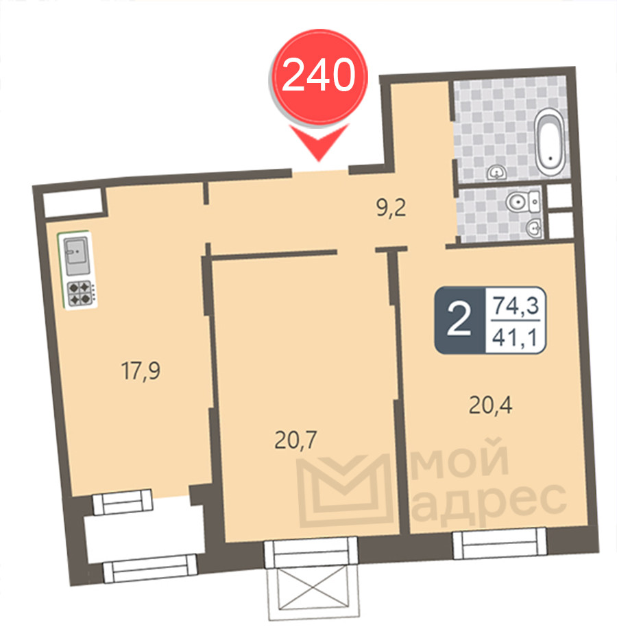 Общая площадь 74.3 м2