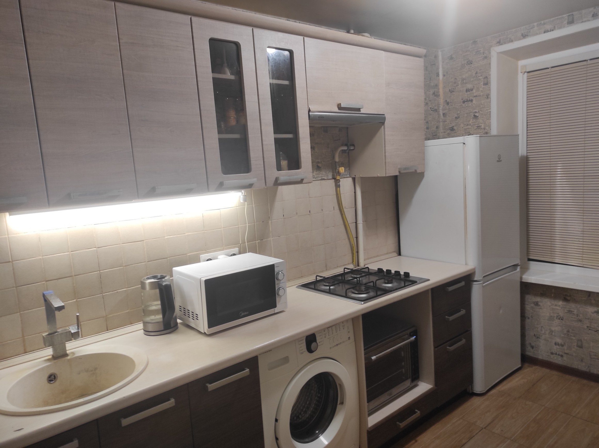 В квартире был ремонт в 2015 году, со сменой проводки, коммуникаций, окон, натяжные потолки.