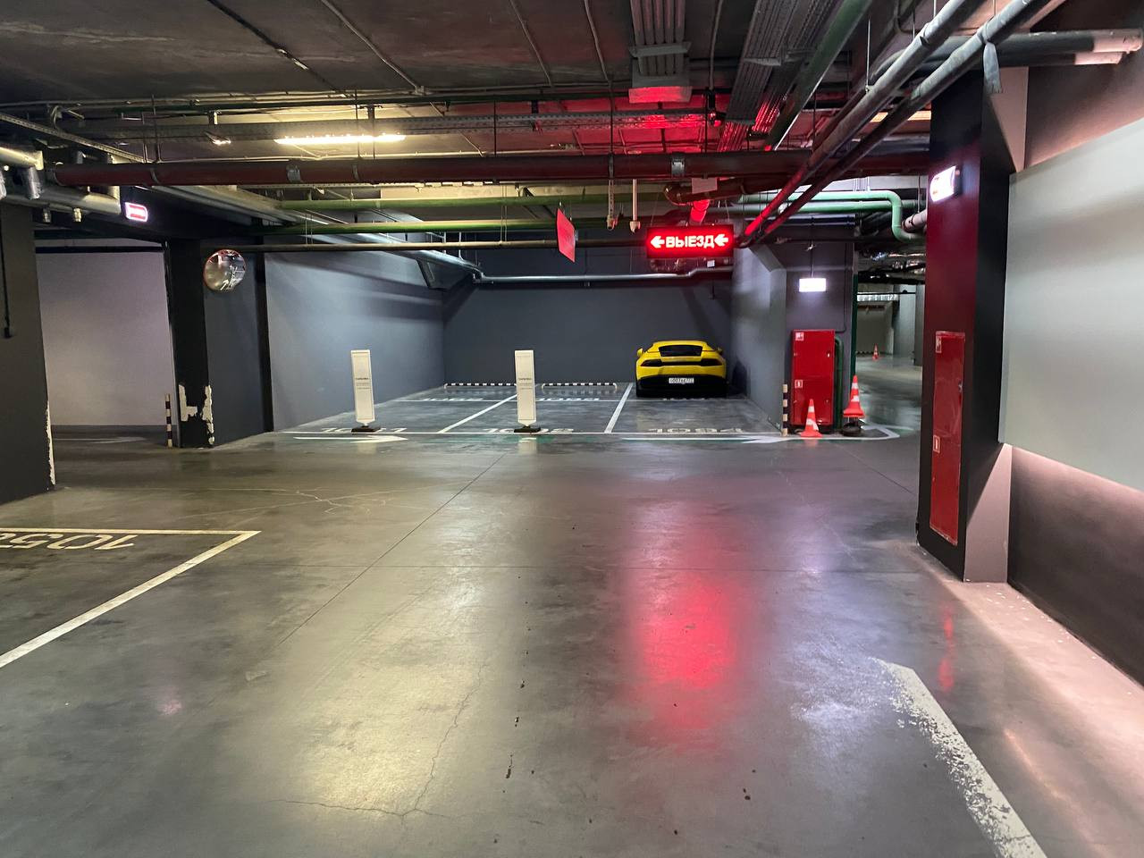 Подземный паркинг, на который можно спуститься на лифте, помыть авто на автомойка Carleone. Вы можете купить или снять в аренду машиноместо или кладовку.