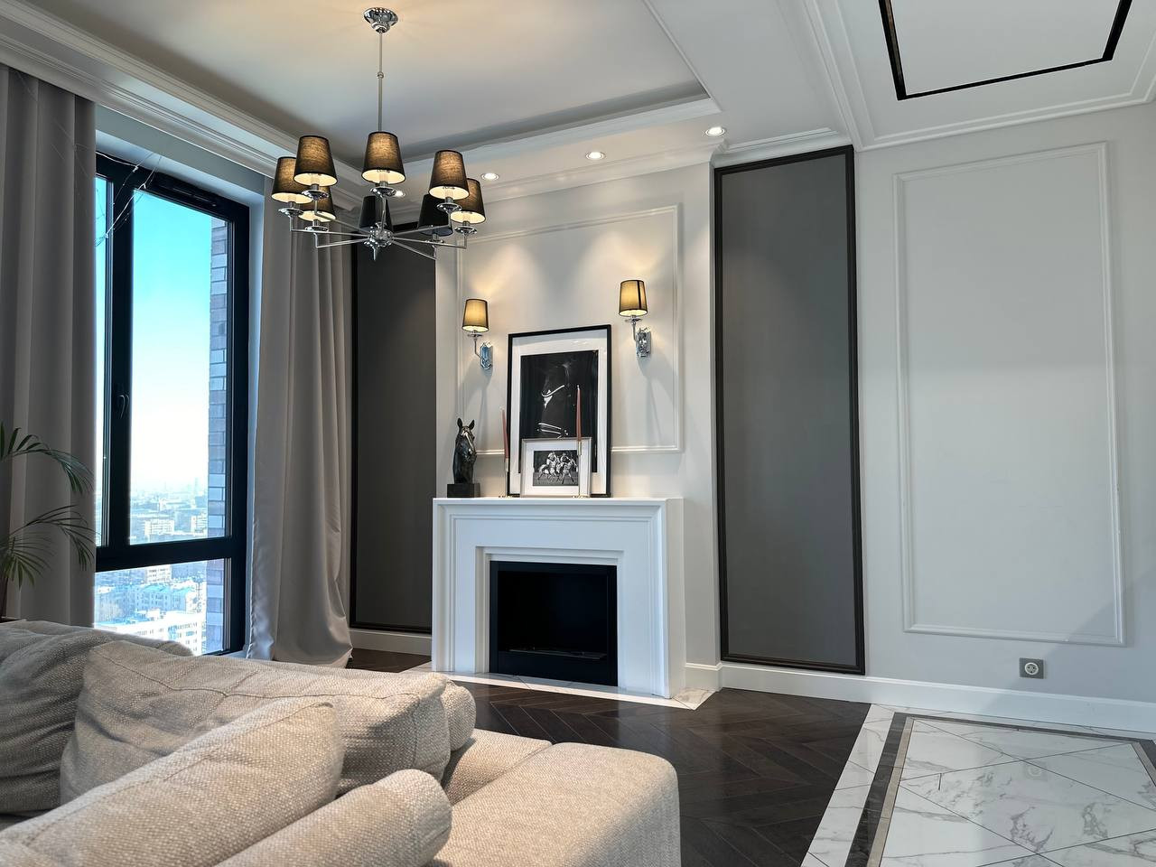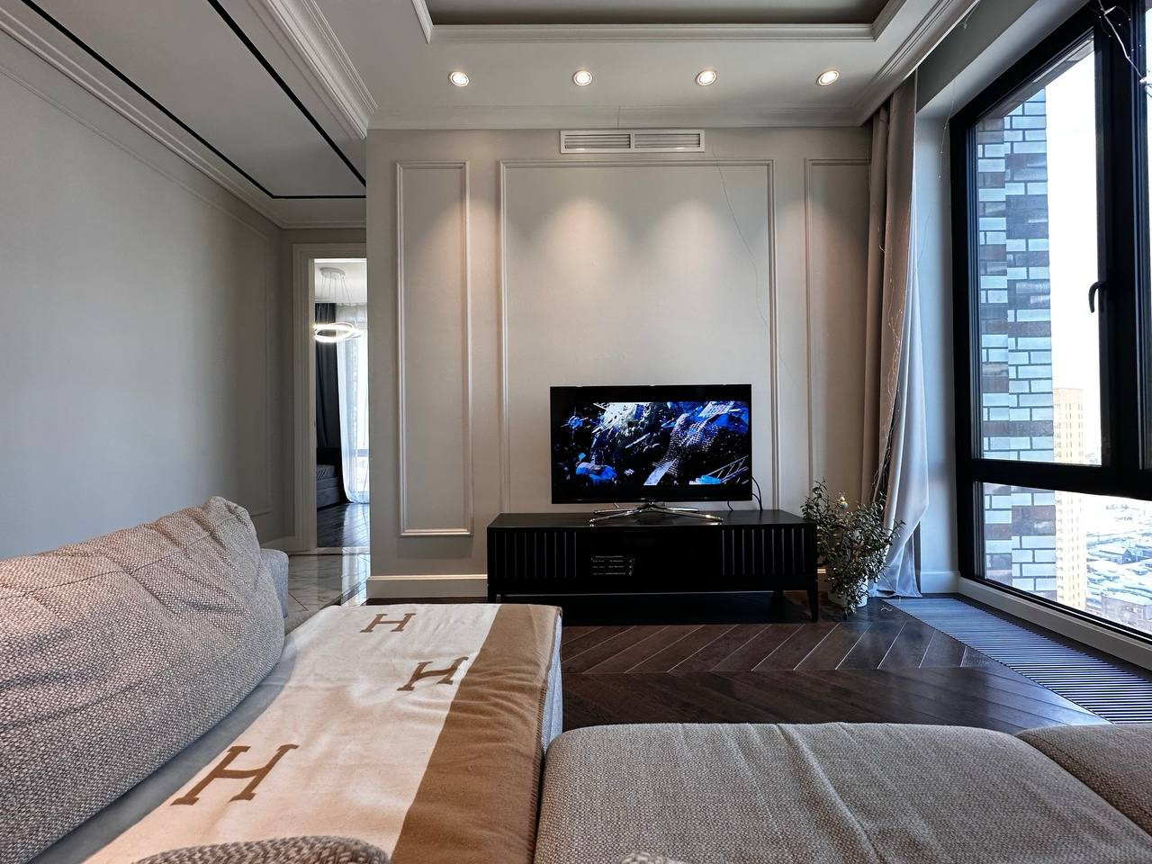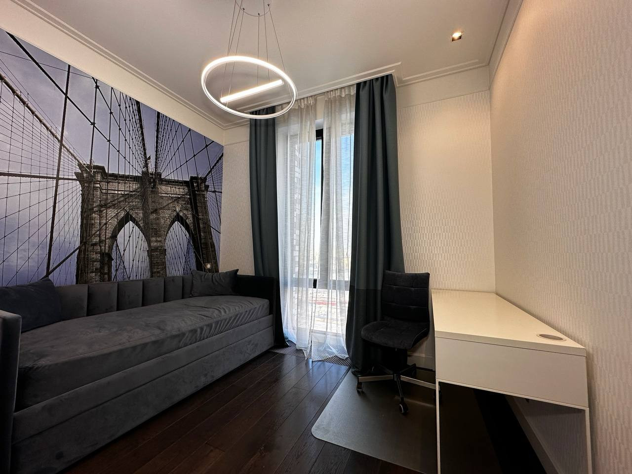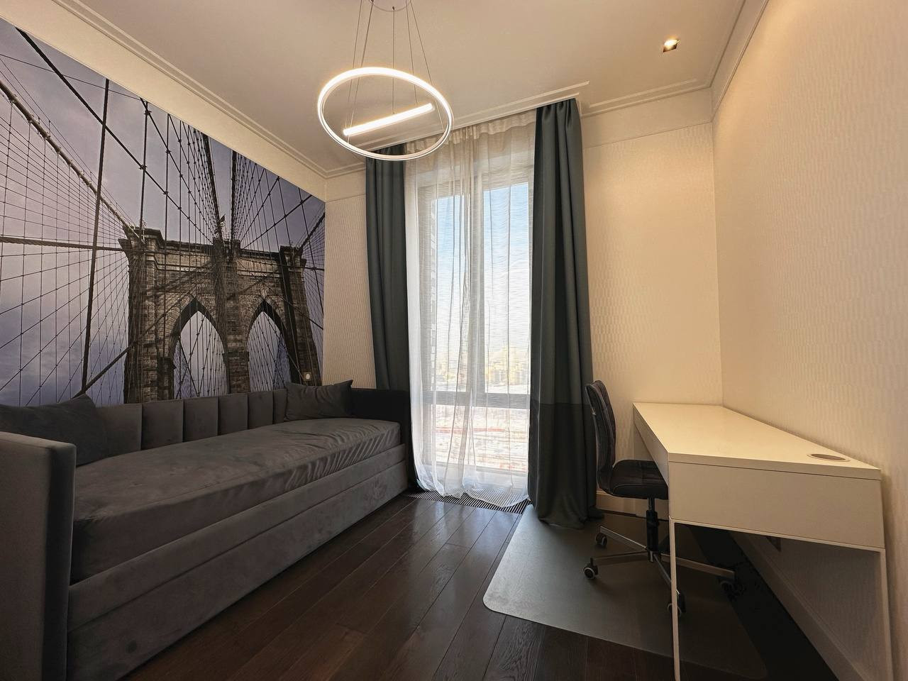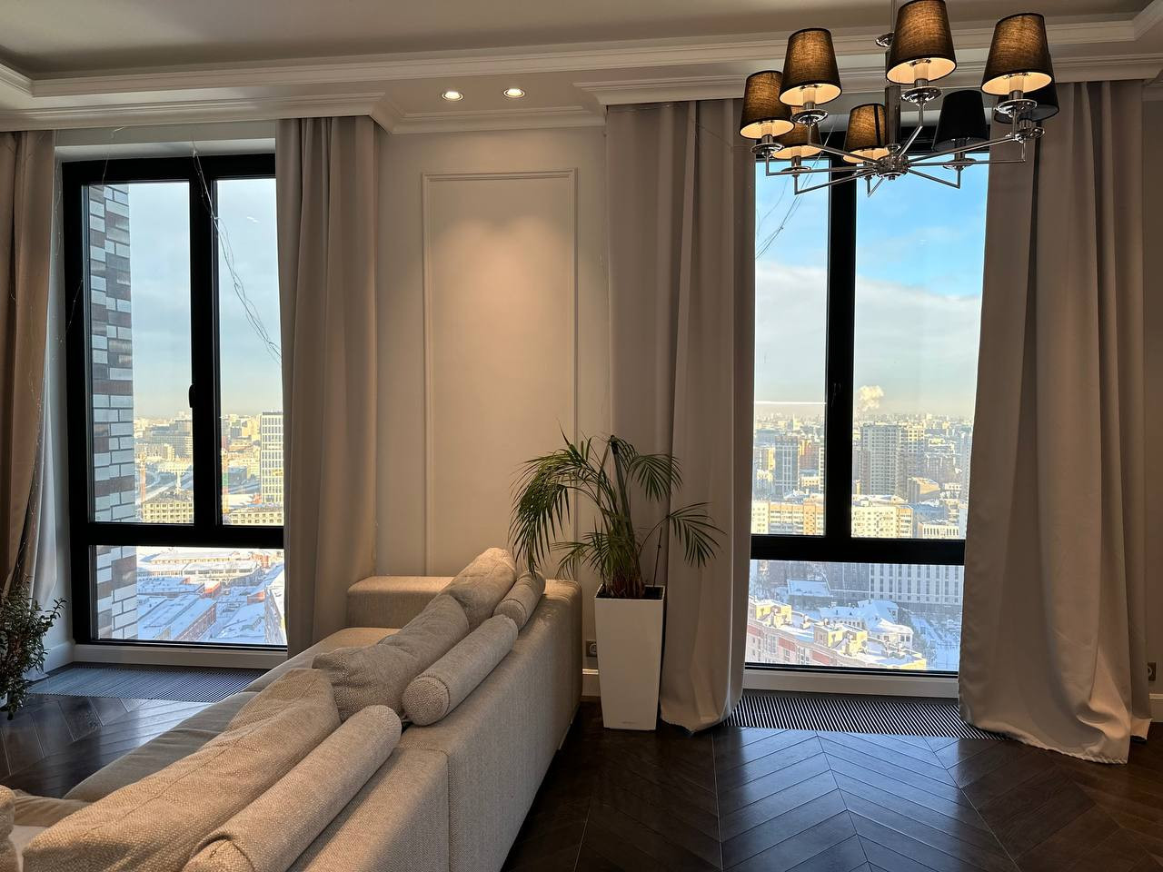 - Спальня с 2мя панорамными угловыми окнами, одно окно в сторону центра Москвы, другое с видом в сторону Останкинской башни и захватывающих летних закатов.