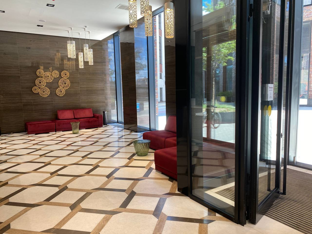 ЖК бизнес класса Пресня Сити, с охраной, видеонаблюдением, своей инфраструктурой на первых этажах, есть 2 вкусных и красивых ресторана, 4 кофейни, 4 салона красоты, супермаркет Мираторг, аптека, химчистка, 2 массажных салона, груминг салон и конечно же на территории ЖК находится памятник архитектурный культурный центр Зотов.