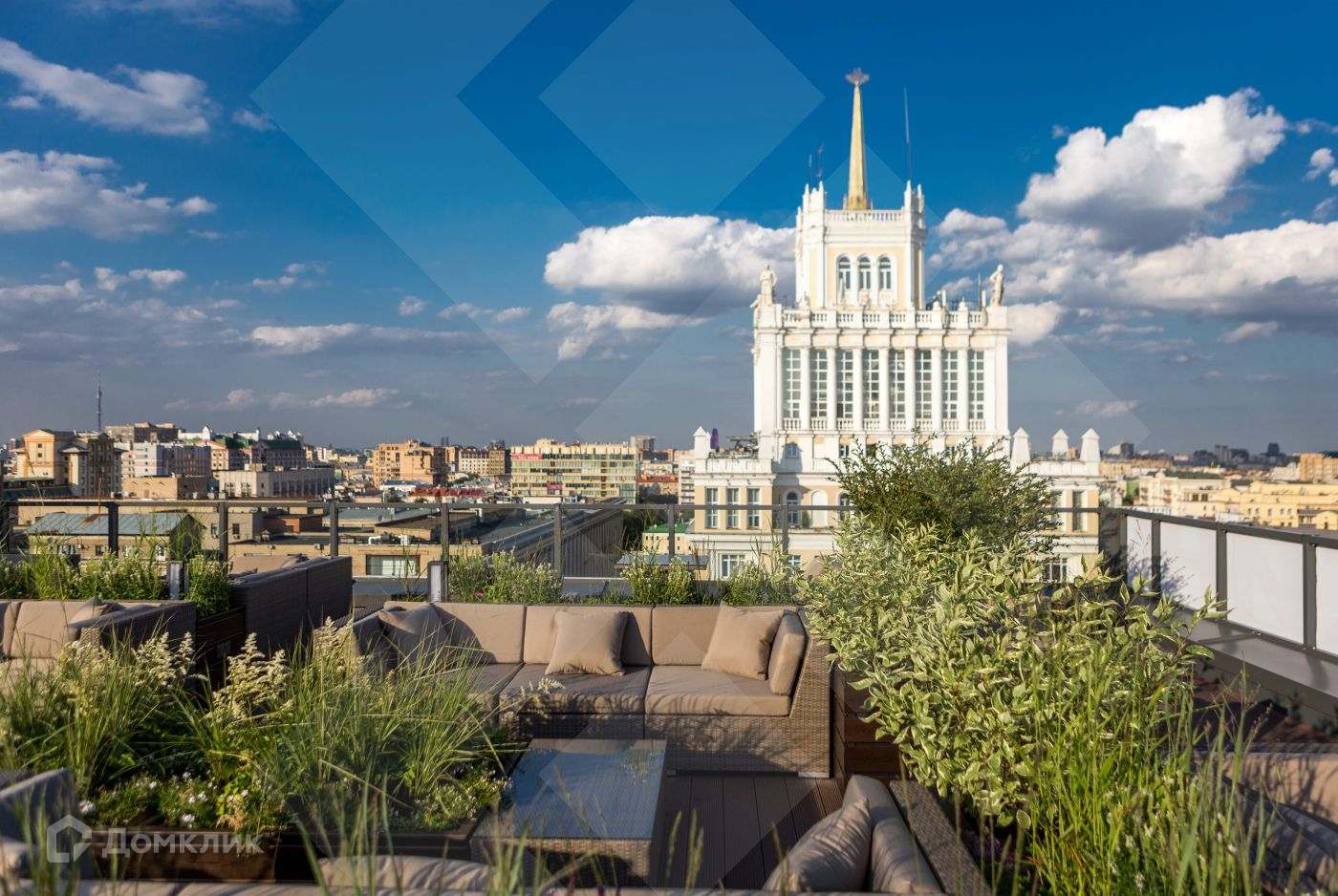 Особенность квартала "Сады Пекина" виды на Кремль, Храм Христа Спасителя и семь знаменитых "сталинских высоток", а также атмосферные лаунж-зоны расположенные на крыше комплекса.