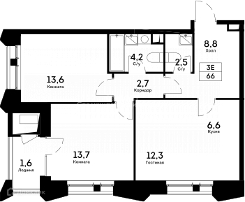 Общая площадь 66 м2