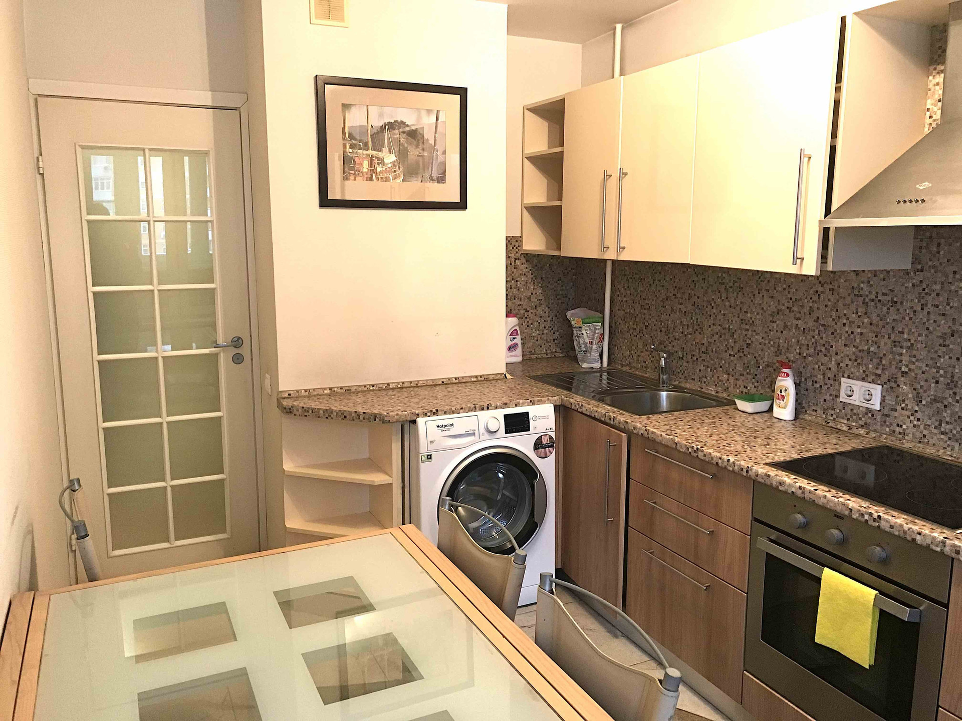 Вся мебель и техника (кондиционер, холодильник, стиральная машинка) остаются покупателю.
