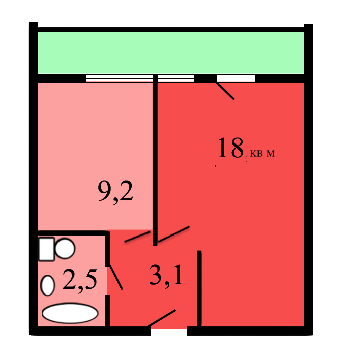 Общая площадь 33 м2