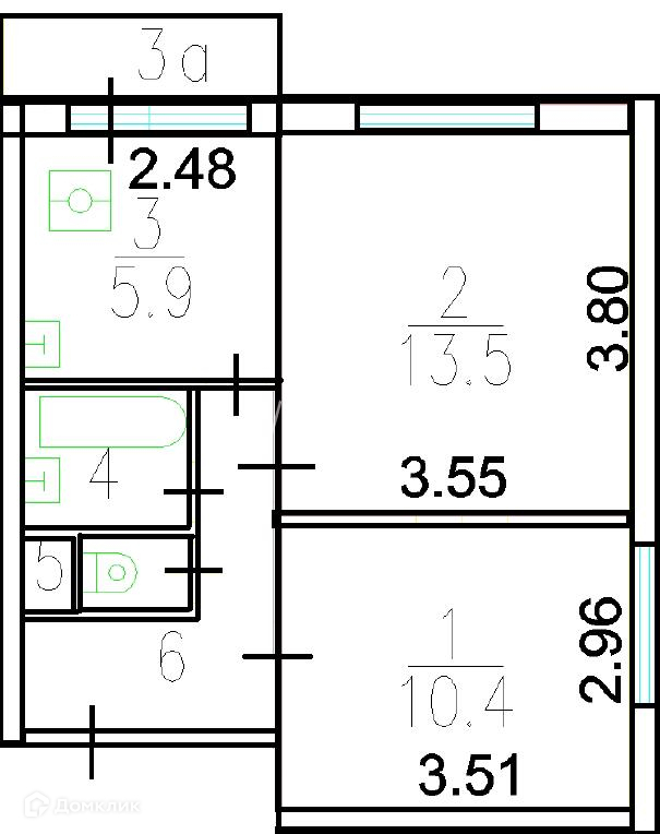 Общая площадь 40.8 м2
