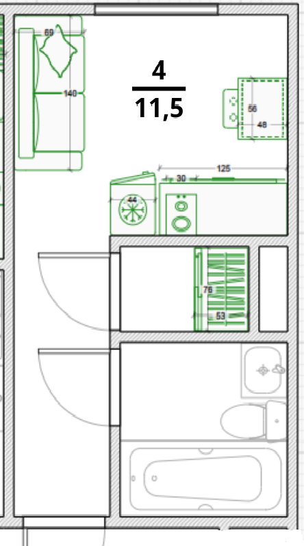 Общая площадь 11.5 м2