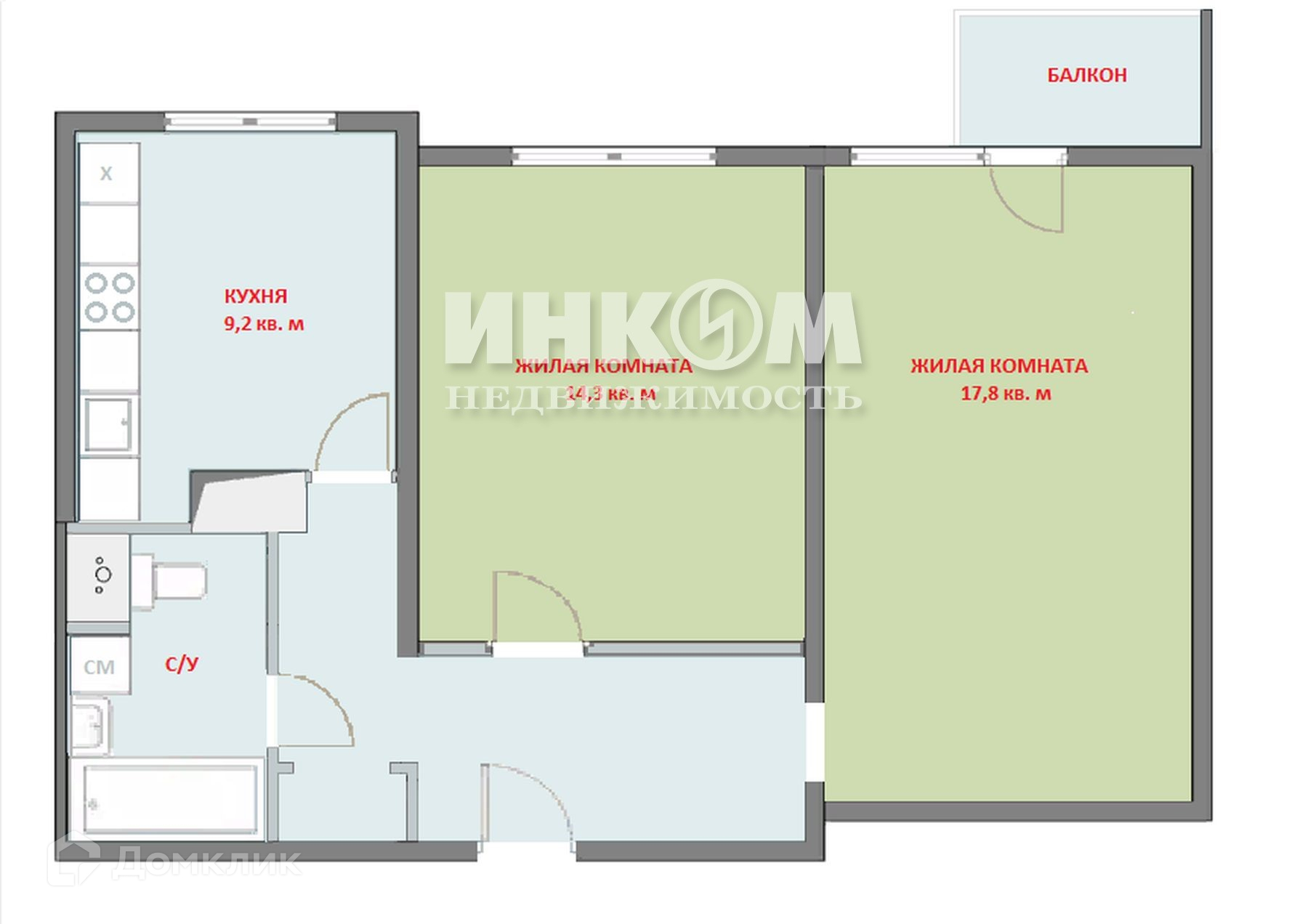 Жилая площадь 32.1 м2