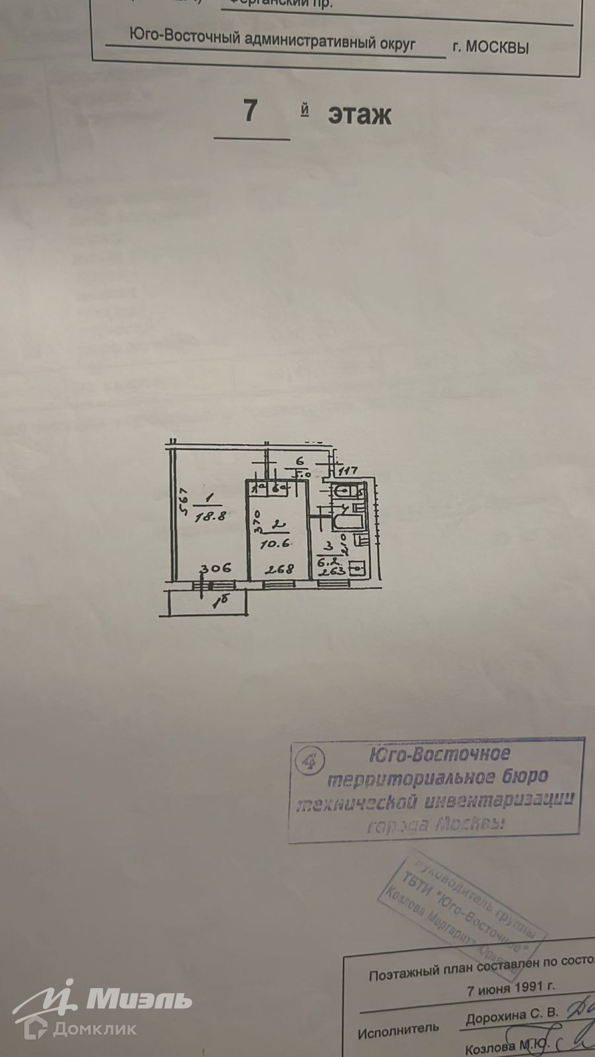 Продаётся двухкомнатная квартира вторичного рынка на 7 этаже 9-этажного дома, расположенного в районе метро Юго-восточная. Площадь квартиры составляет 44.40 кв.м., включая кухню площадью 6,2 кв.м. Это очень экономичный вариант, который в данный момент требует ремонта.