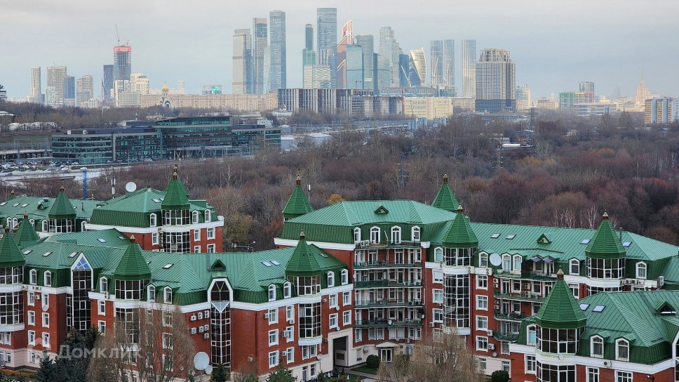 Панорамное остекление с видами на ухоженную внутреннюю территорию с ландшафтным дизайном и в сторону Золотых Ключей 1, Москва Сити, МГУ, 15 окон, полная инсоляция в течение всего светового дня.