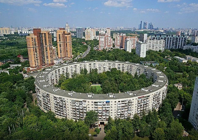До метро Минская 10 минут пешком через красивую прогулочную зону вдоль берега реки Сетунь, рядом с которым расположен Круглый дом. Рядом с домом детский сад и школа, несколько магазинов и ресторанов, библиотека, почта, банк, аптека, Московский гольф клуб, Мосфильмовской пруд. До центра города 20 минут на транспорте, до Воробьевых гор и Поклонной горы можно дойти пешком. Салют прекрасно виден из дома с обеих сторон.