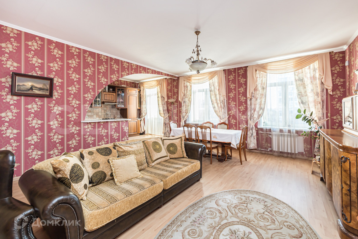 Продается просторная двухкомнатная квартира площадью 102,5 м² на 5 этаже 7-этажного кирпичного дома, расположенного в пешей доступности от нескольких станций метро.