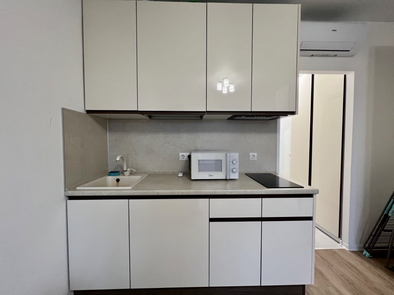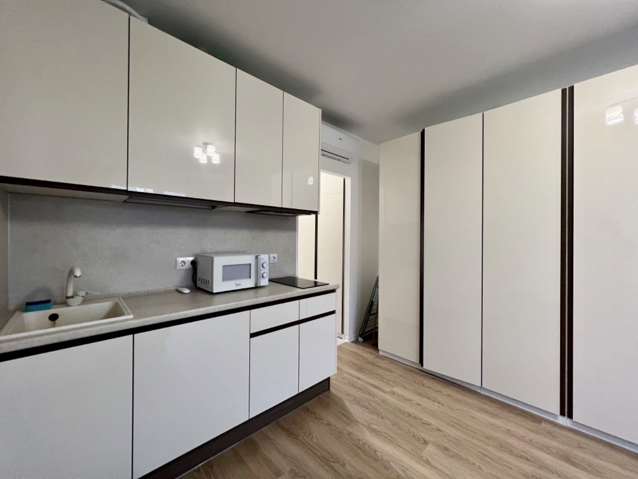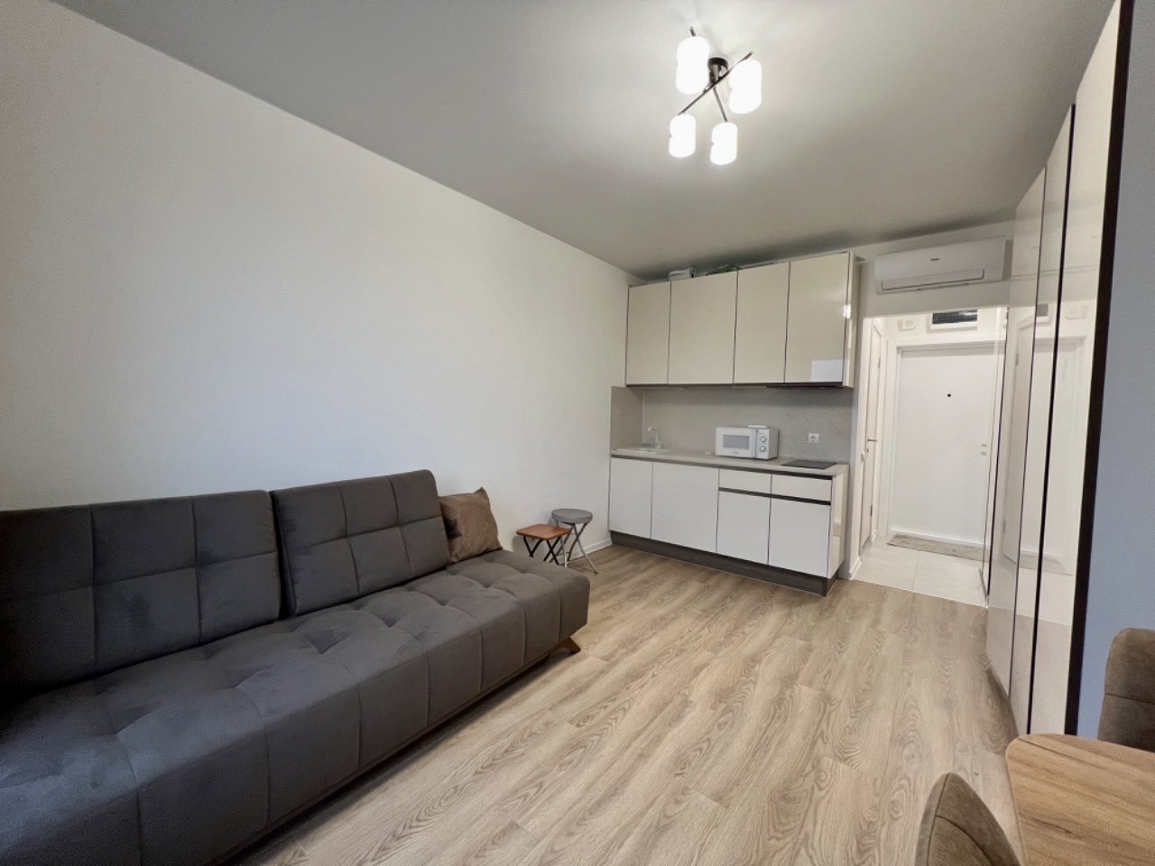 Квартира полностью готова к проживанию: кухня с бытовой техникой, стол со стульями, вместительные шкафы, стиральная машина, кондиционер. В квартире очень тепло, отопление и окна фирмы Rehau.