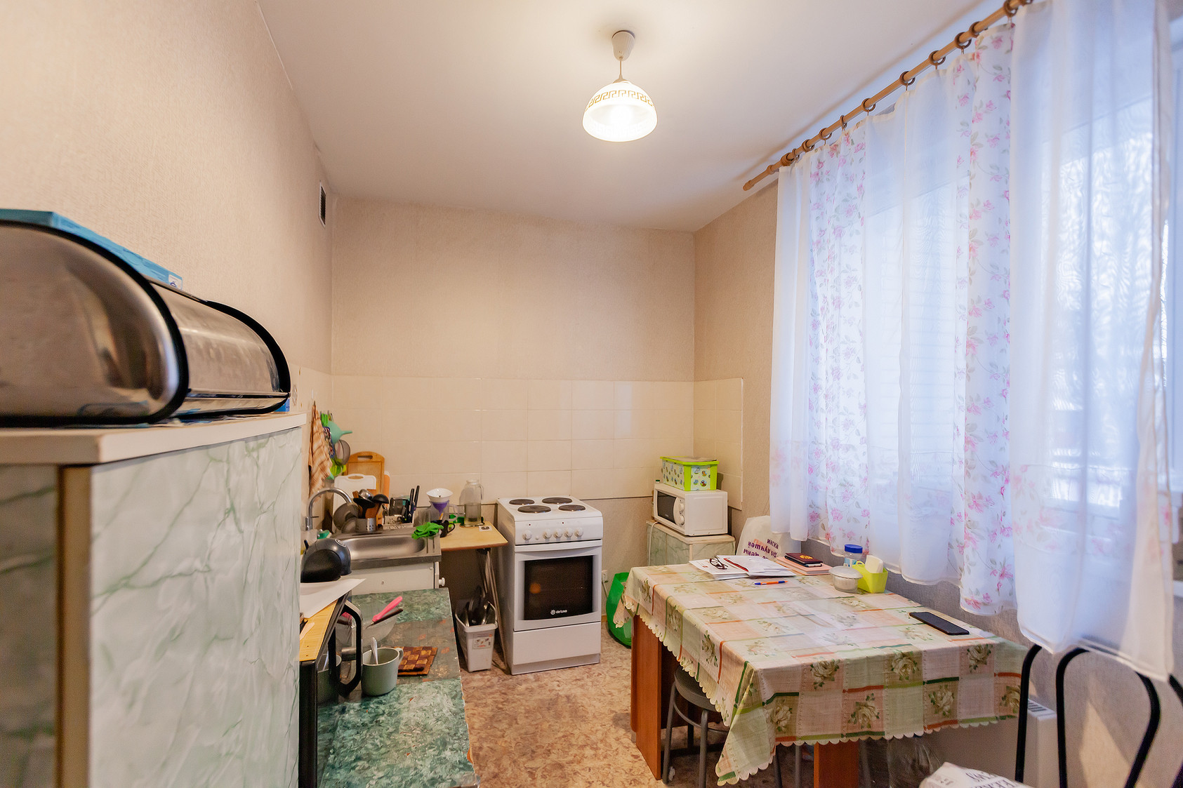 Под окнами козырёк, окна выходят на три стороны: во двор и на не шумный Юрьевский пер., на северо-запад, северо-восток и восток.