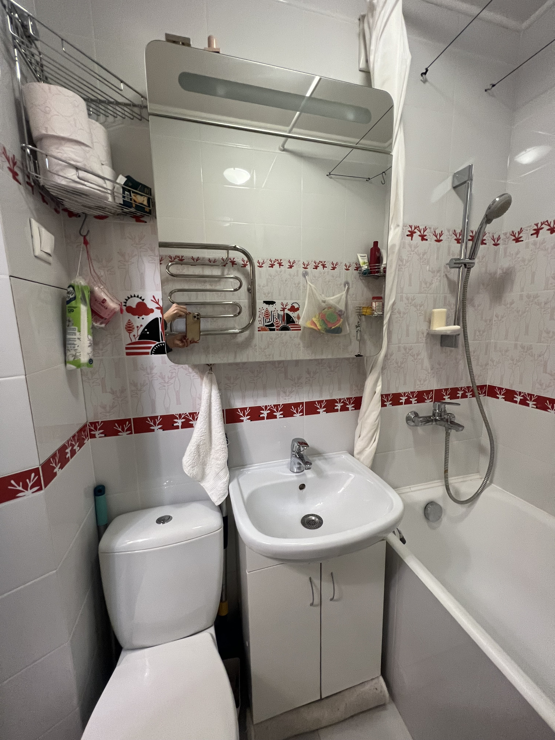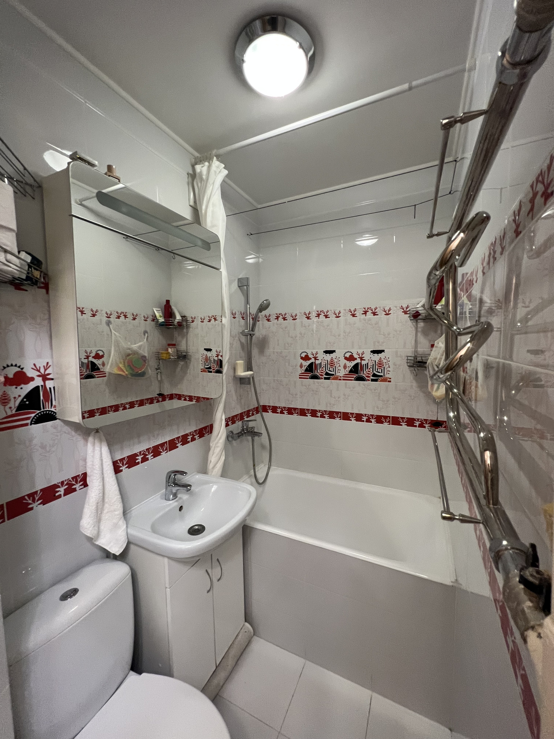 С/у совмещен, установлена стиральная машина.