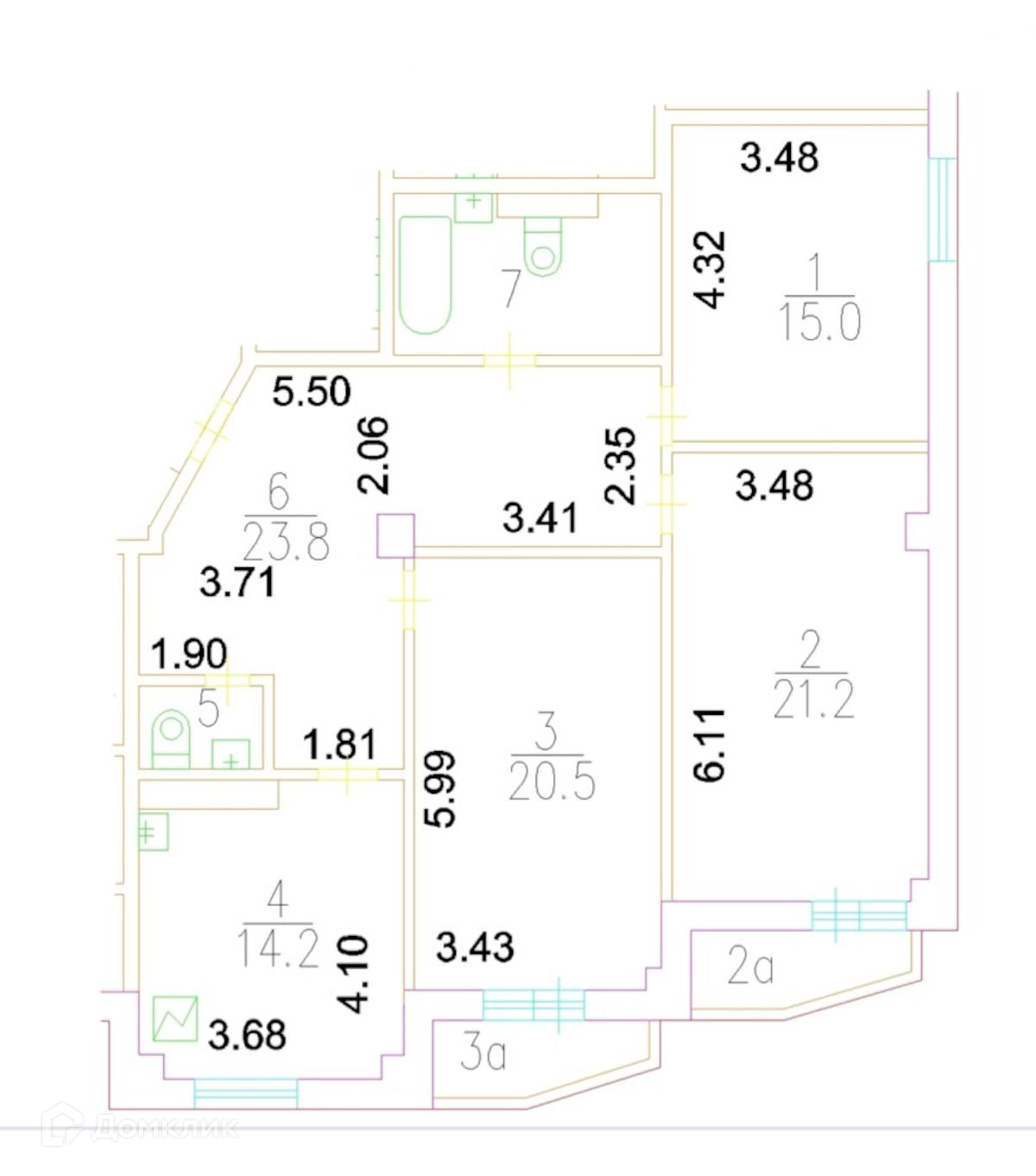 Жилая площадь 56.7 м2