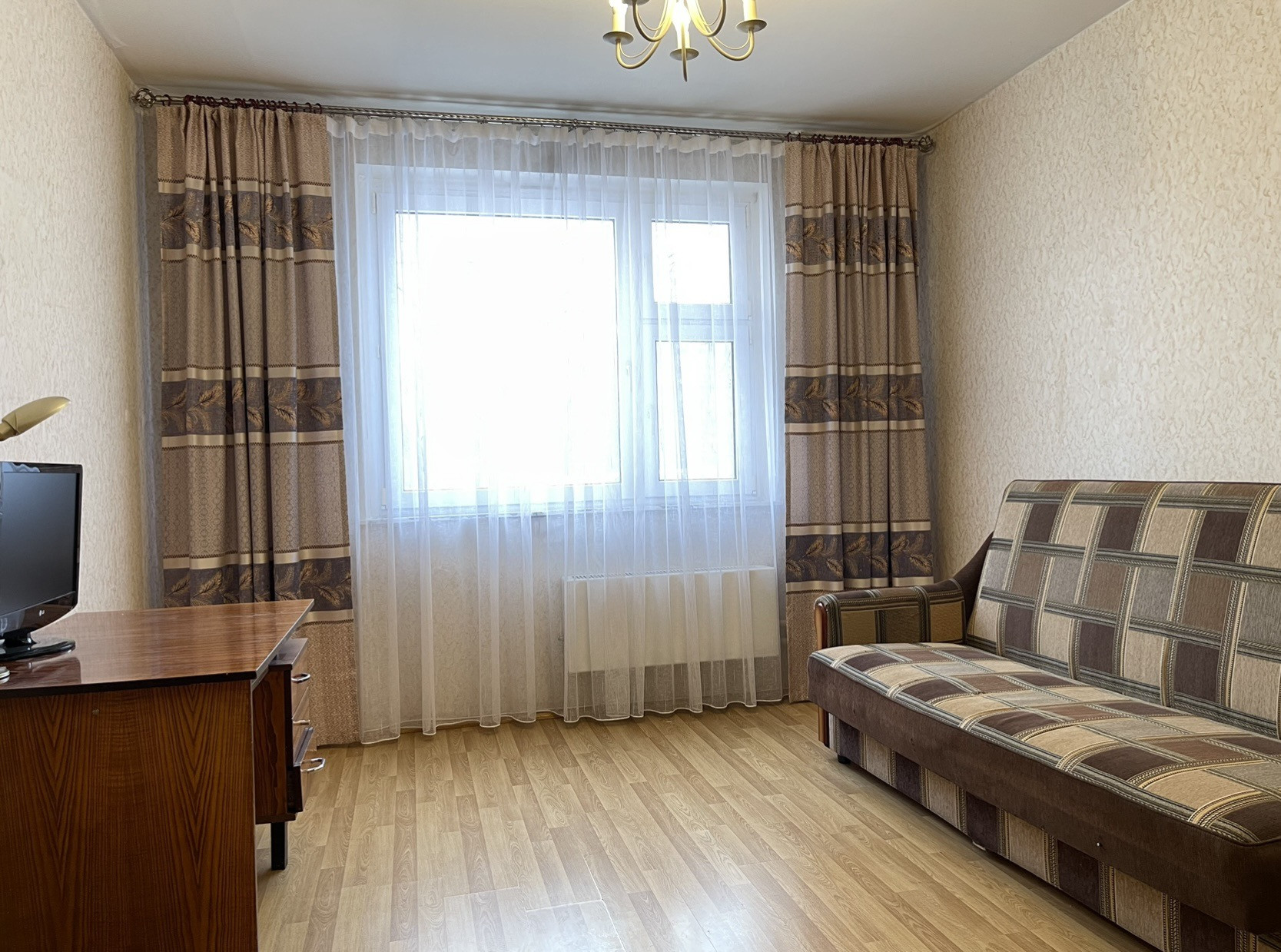 Уютная комната квадратной формы 14.2 кв.м с большим окном.