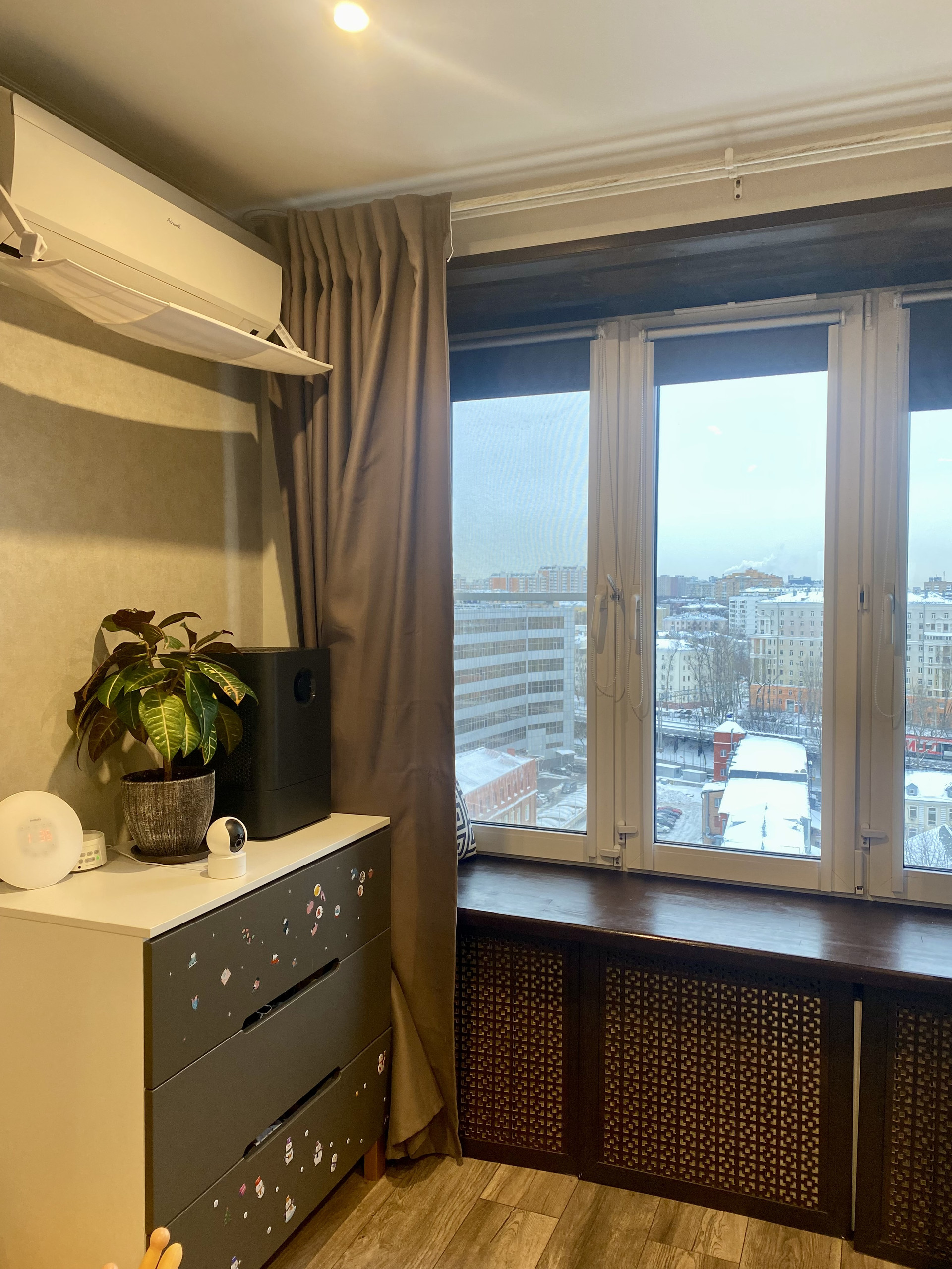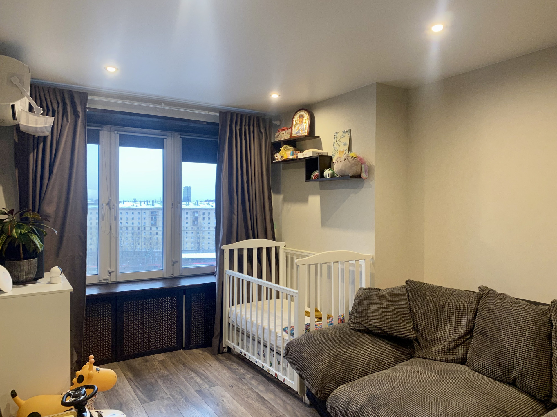 Квартира в хорошем состоянии, после свежего ремонта с заменой электрики, водоснабжения, радиаторов и труб отопления. Кухня оборудована современной встроенной техникой. Ванная оснащена тропическим душем. Установлена система кондиционирования. Большие пластиковые окна и широкие подоконники (в детской комнате откосы и подоконник отделаны деревом). Панорамный вид на всю Москву.
