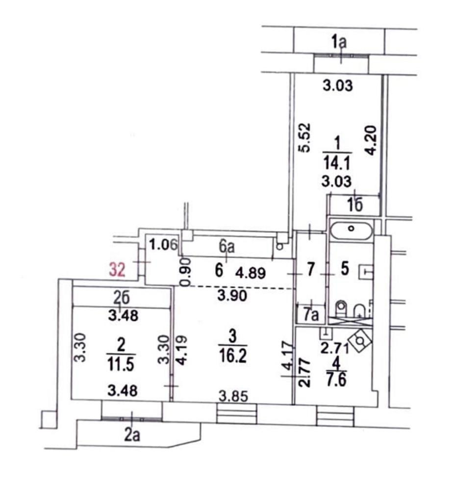 Жилая площадь 51.6 м2