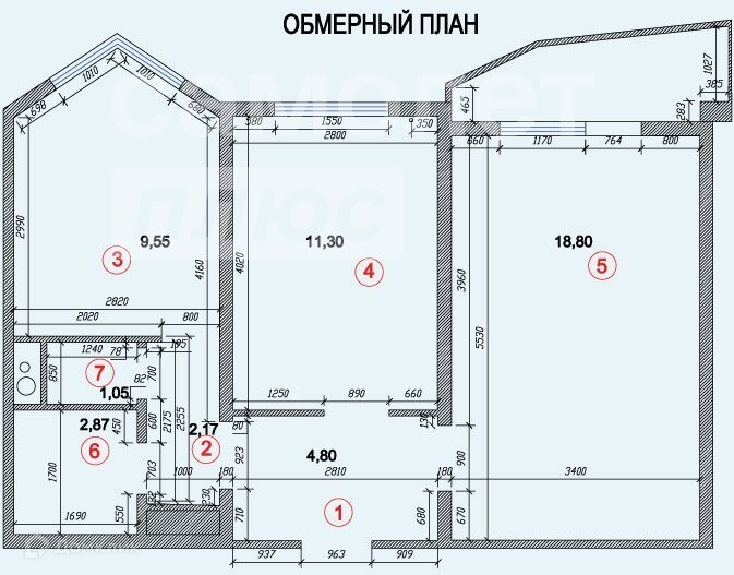 Общая площадь 51.1 м2