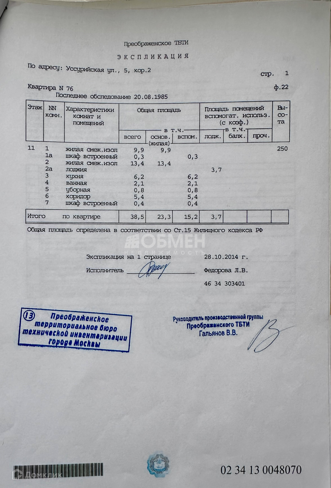 Жилая площадь 23.3 м2