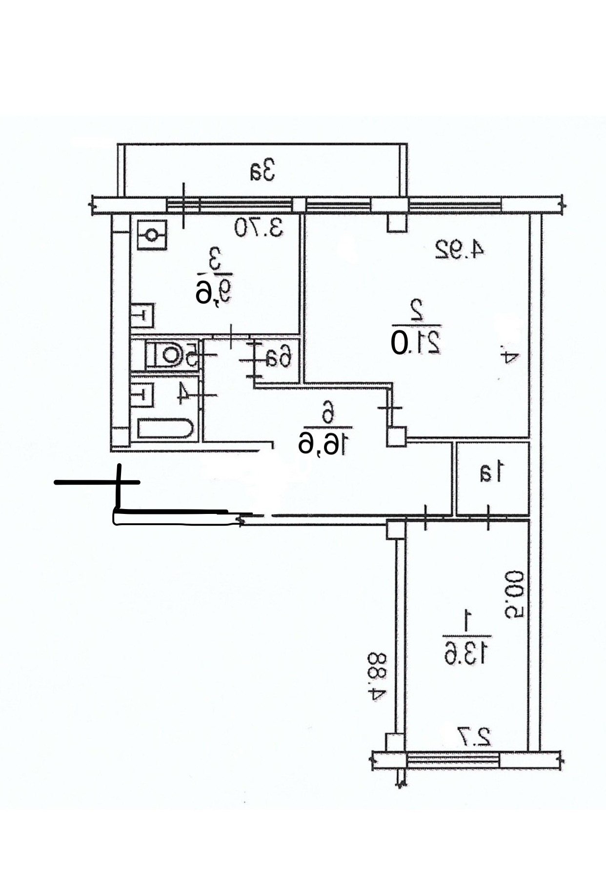 Распашонка, общая площадь с учетом лоджии 73кв.м., без учета лоджии 68кв.м.(данные по ЕГРН), комнаты изолированные 21,0 и 13,6 кв.м., кухня-9,6кв.м., лоджия 5кв.м., 2 кладовые комнаты, коридор 16,6кв.м.