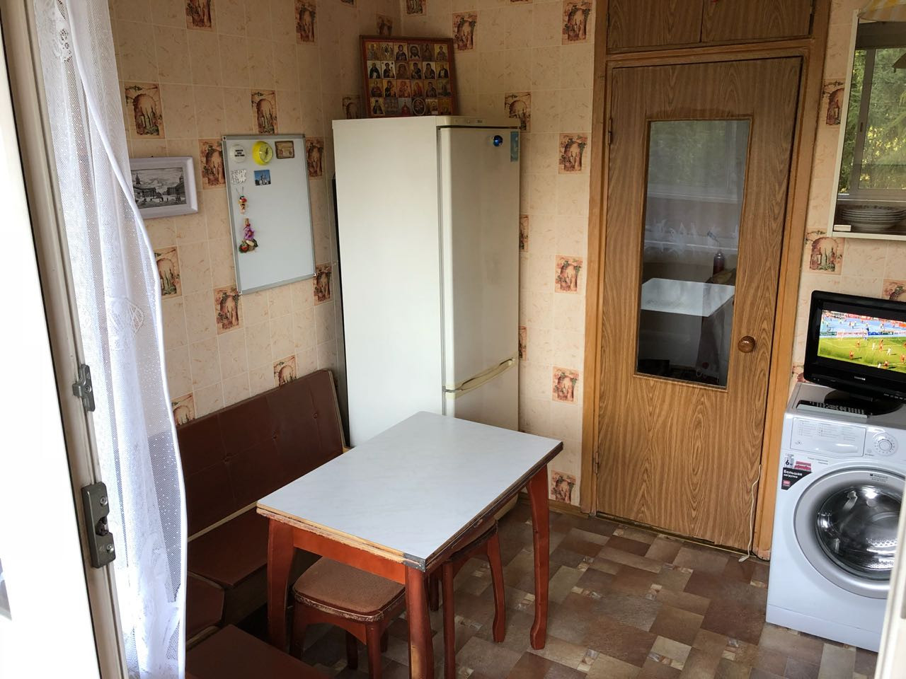 Облагороженная дворовая территория, всегда есть парковочные места. Дом 1974 года постройки крупнопанельный, высота потолков 2,7м. 2 лифта(пассажирский и грузовой, огромный холл.
