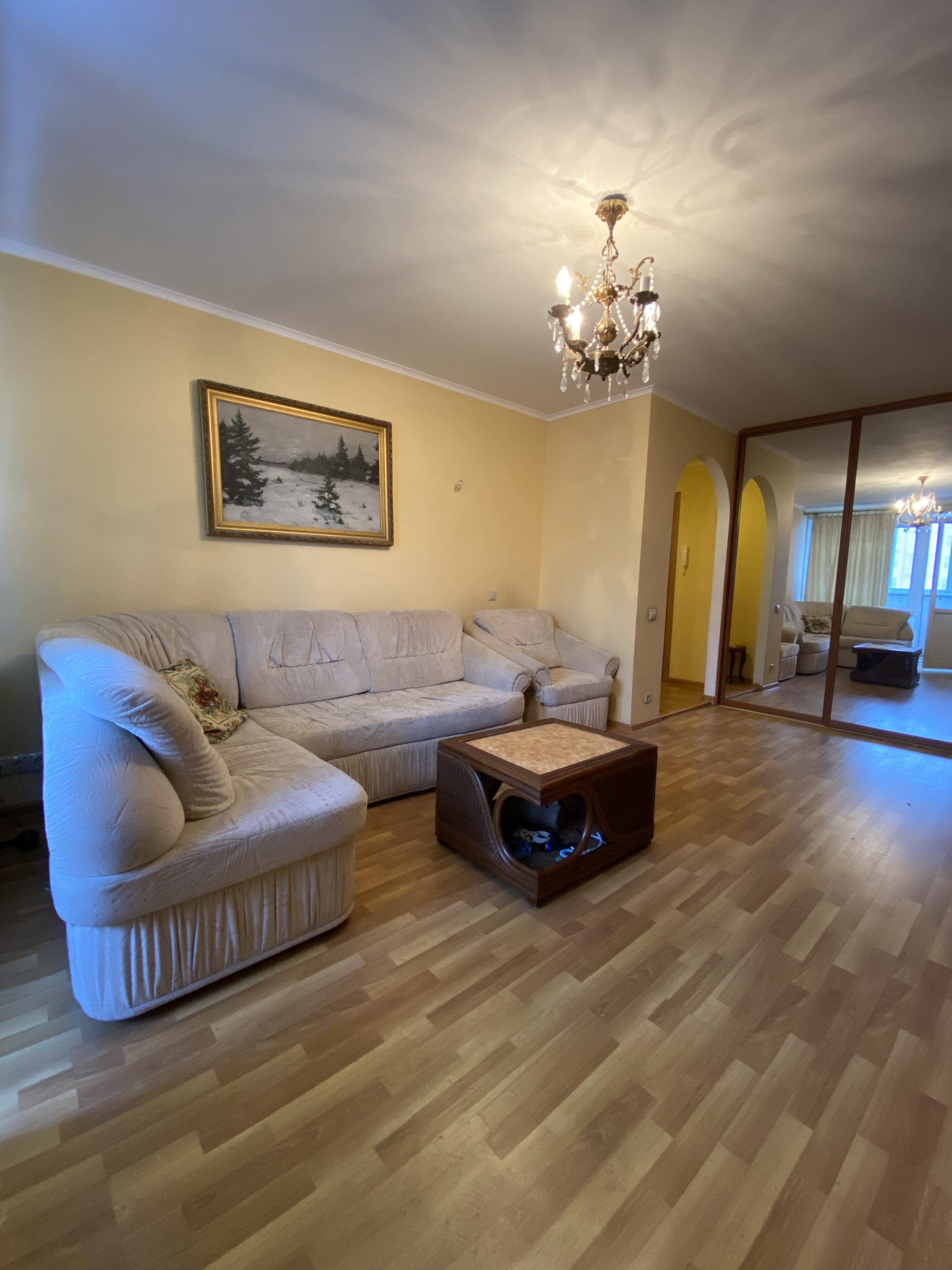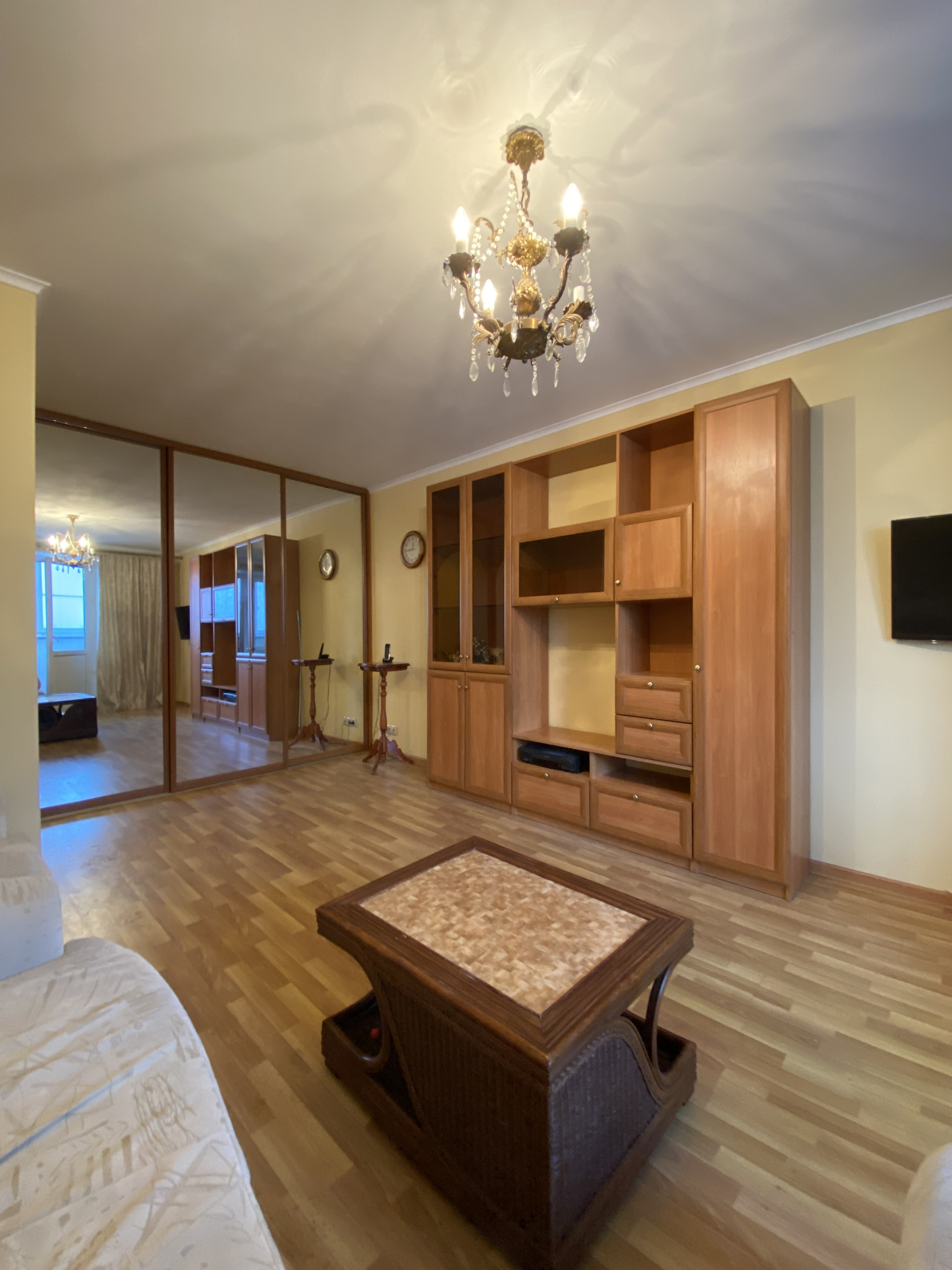 Светлая однушка 37,9 кв.м. с хорошим продуманным интерьером «под себя»: светлые стены, зеркальный шкаф-купе, встроенная кухня, большая лоджия вдоль кухни и комнаты, стеклопакеты, прихожая, гардеробная (много места под хранение), санузел совмещенный.