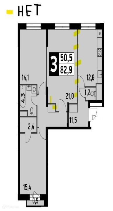 Количество комнат 3
