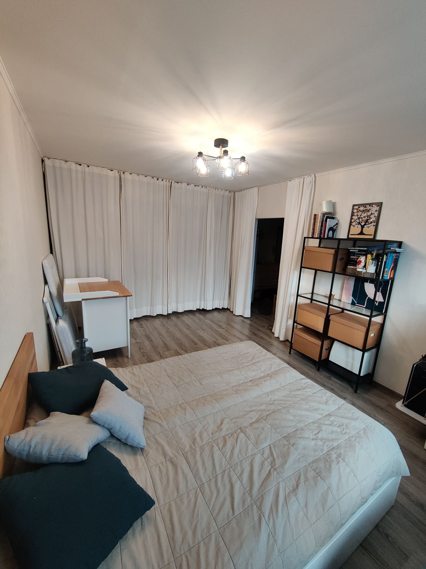 - в комнате - гардеробная система хранения Икеа Альгот, кровать Икеа Мальм с подъёмным механизмом и ортопедическим матрасом.