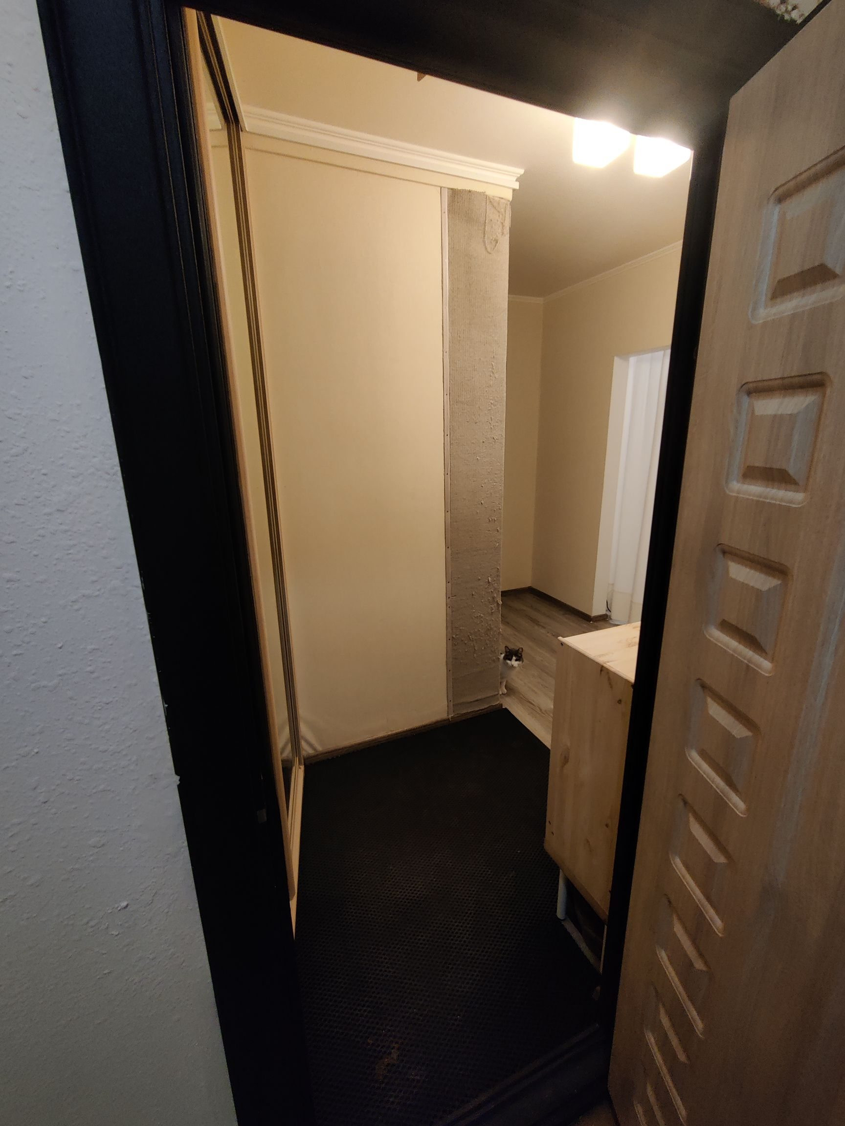 Большой закрывающийся на ключ тамбур с окном, есть возможность поставить стеллаж и хранить какие-то вещи, есть место для коляски и велосипеда, спокойные соседи.