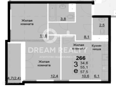 Общая площадь 57.5 м2