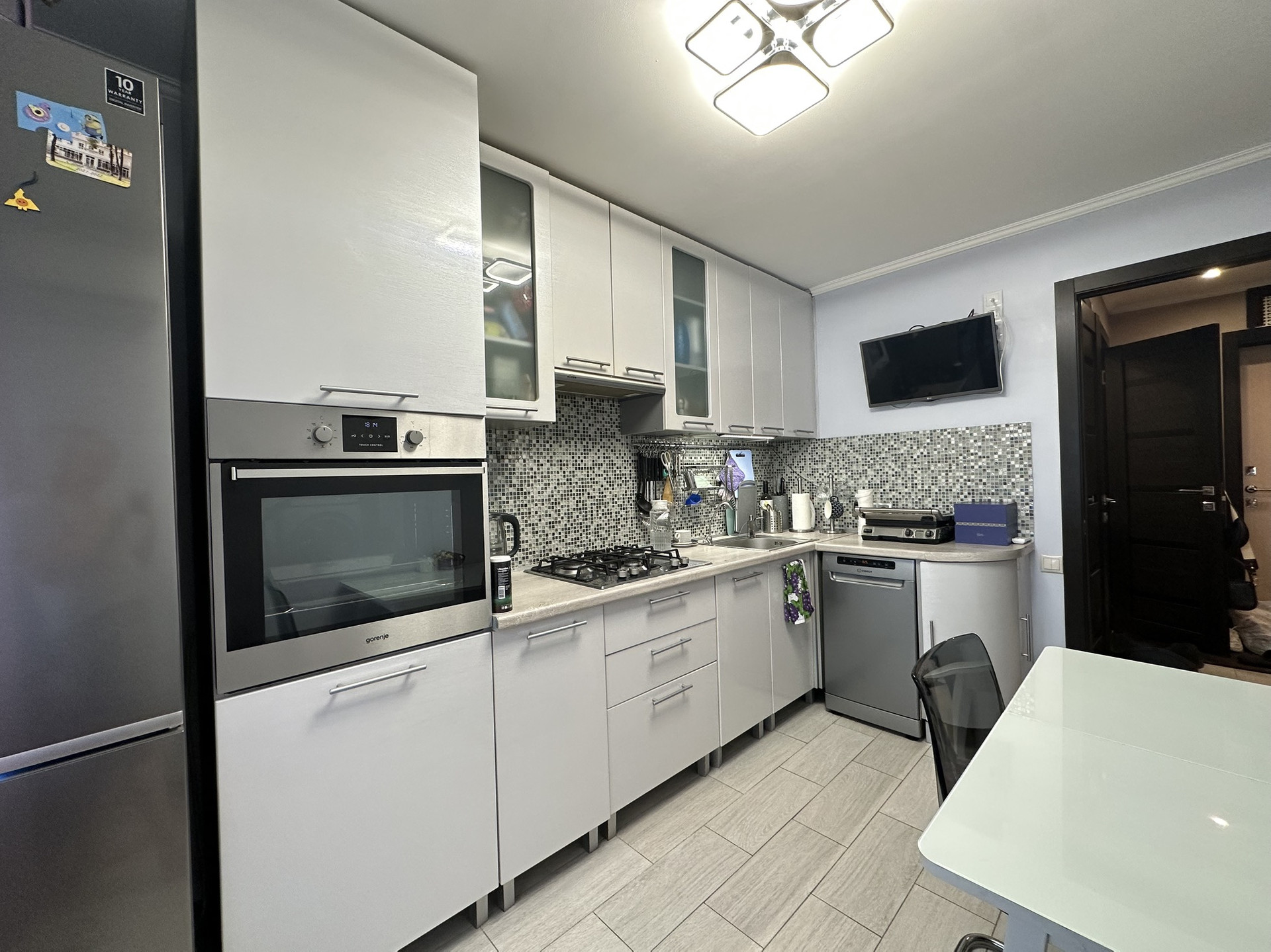 Приличные соседи, подъезд с домофоном и видеонаблюдением. В 50м от дома находится вход в замечательный парк реки Ивницы с водоемом, уточками и различными спортивными развлечениями. Есть, где погулять в тишине.