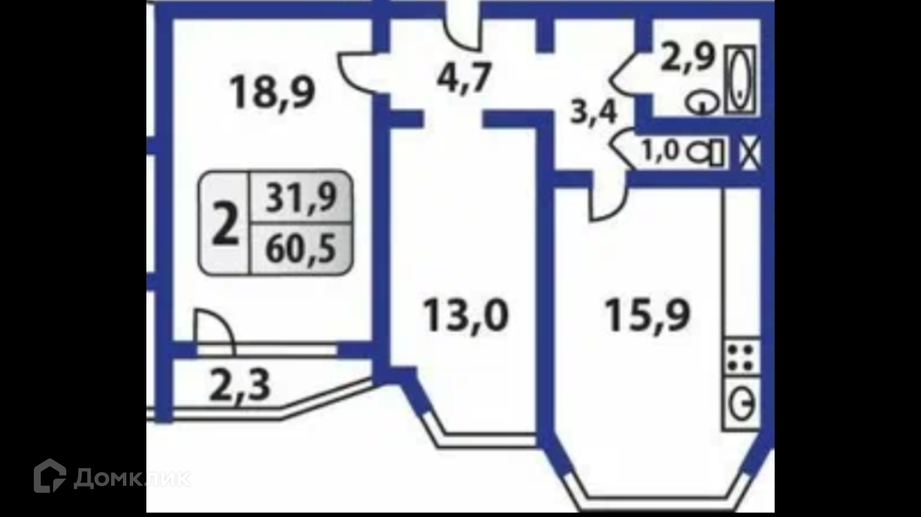 Общая площадь 60.5 м2