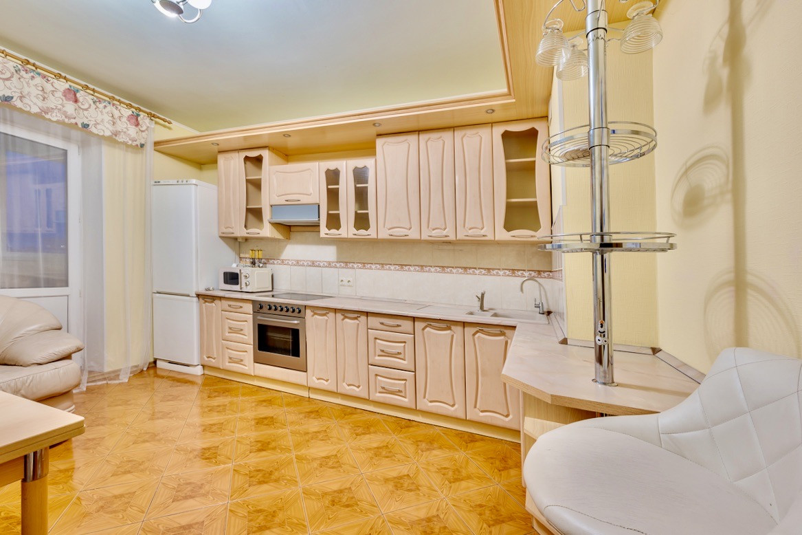 Большая площадь квартиры позволяет использовать квартиру как евротрешку, благодаря большой кухне и двум изолированным спальным комнатам.