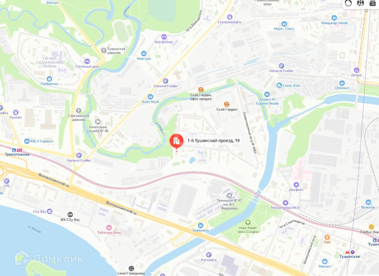До метро Тушинская и МЦК Трикотажная 17 минут пешком.