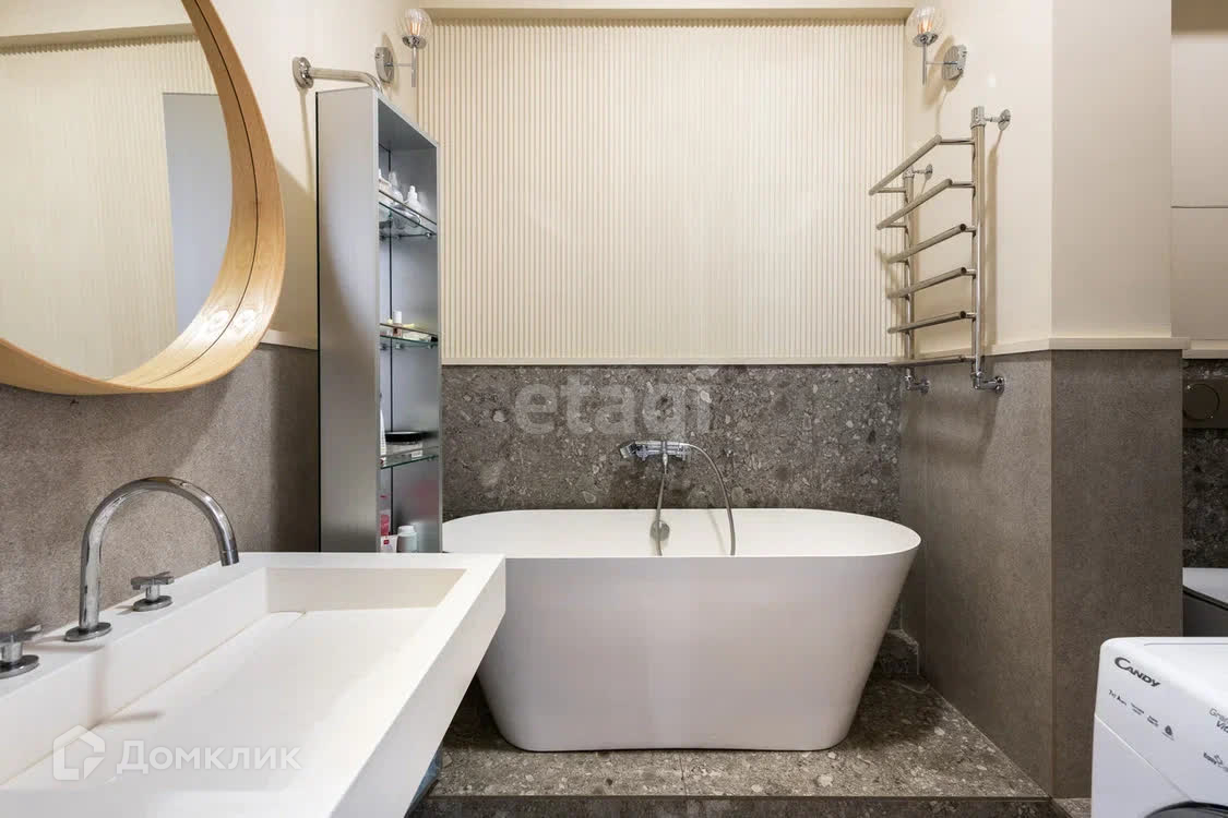 В квартире выполнен дизайнерский ремонт с использованием высококачественных отделочных и чистовых материалов премиум-класса. В рамках ремонта полностью осуществлялось восстановление пола с заливкой бетона и укладкой чистовых материалов. Чистовое покрытие пола выполнено из керамогранита и эсклюзивной паркетной доска от производителя Finex. Радиаторы во всех комнатах от швейцарско-немецкой компании Arbonia. Газовая плита, духовка и вытяжка от итальянских производителей Smeg и Elica.