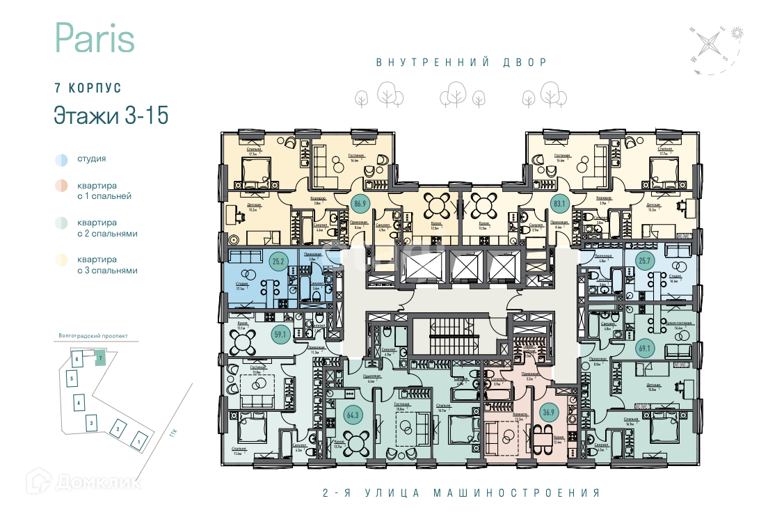 3-комнатная квартира, 85 м2, этаж 12 / 25, на продажу в Москве, Волгоградский проспект, 32/3к7