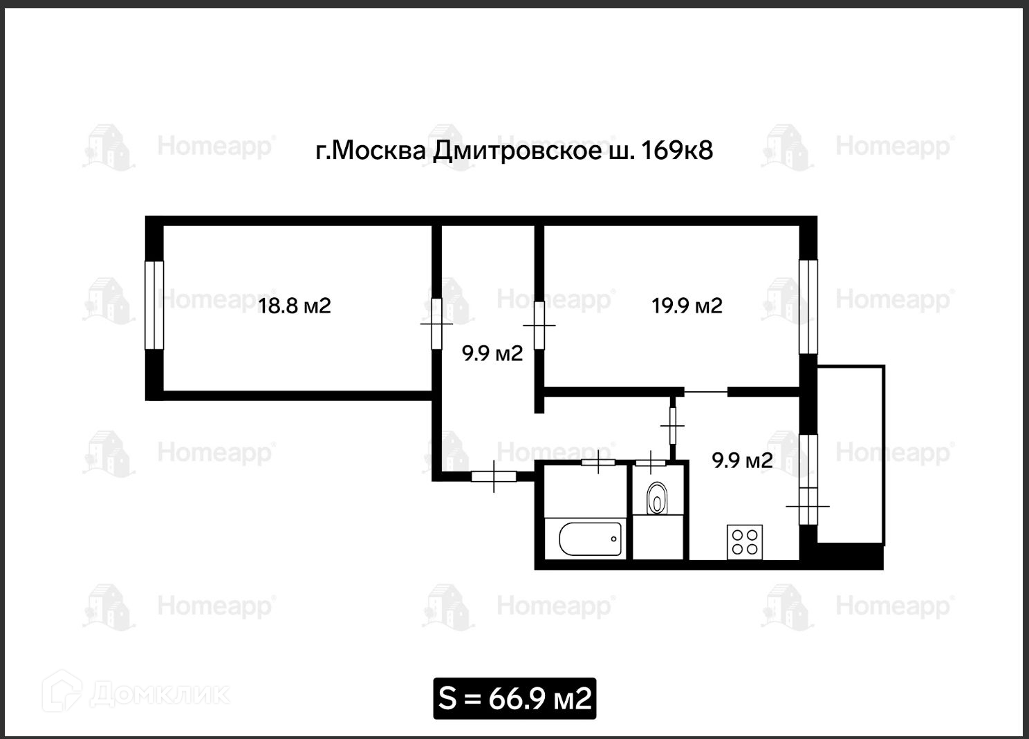 Общая площадь 66.9 м2