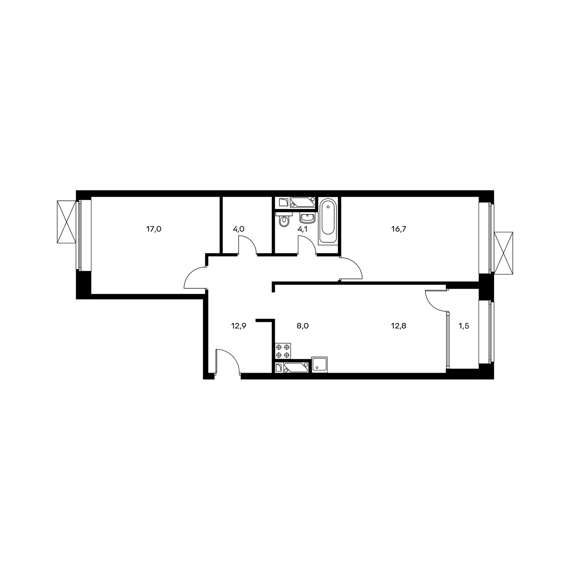 Общая площадь 77.5 м2