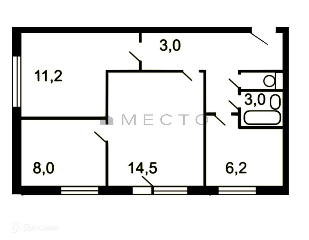 Жилая площадь 33.7 м2