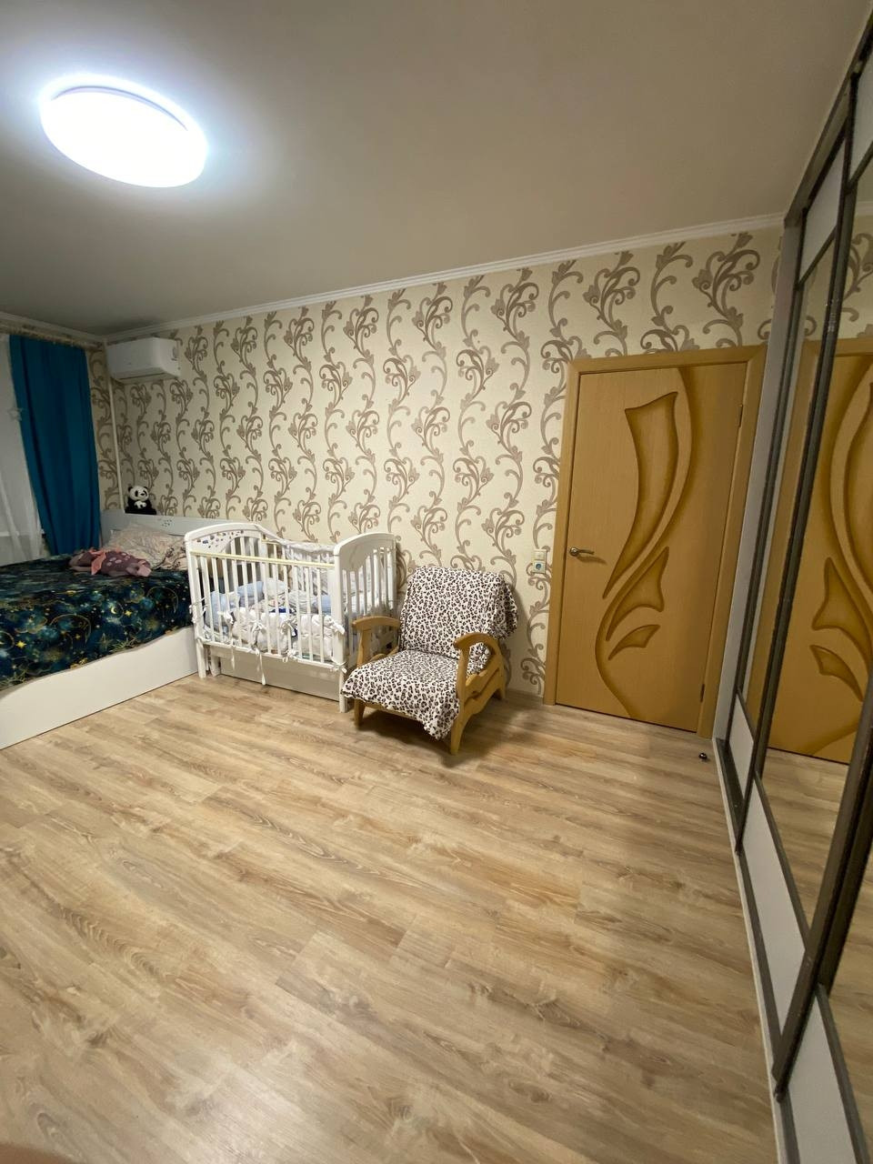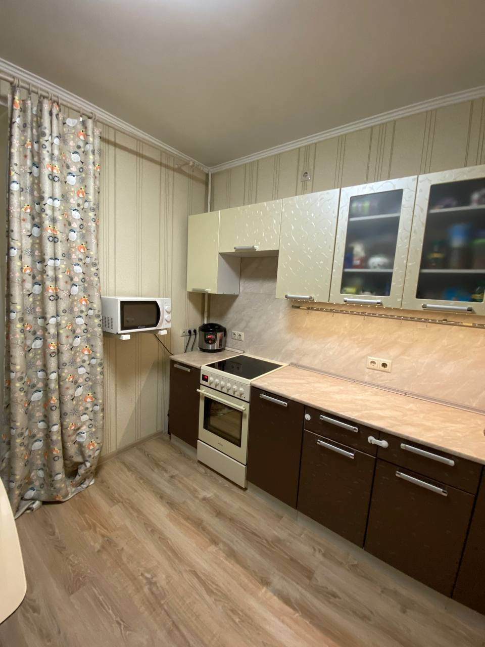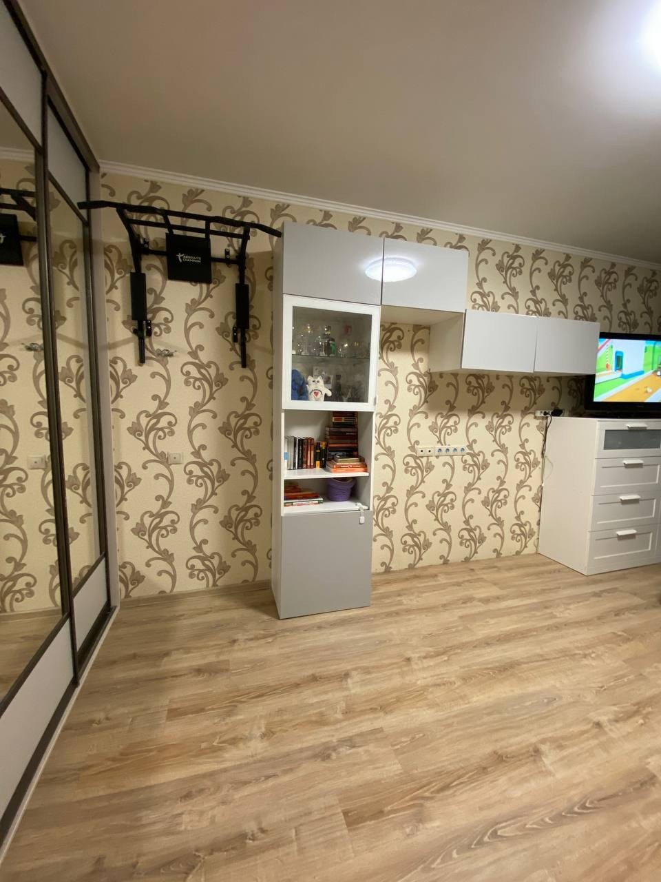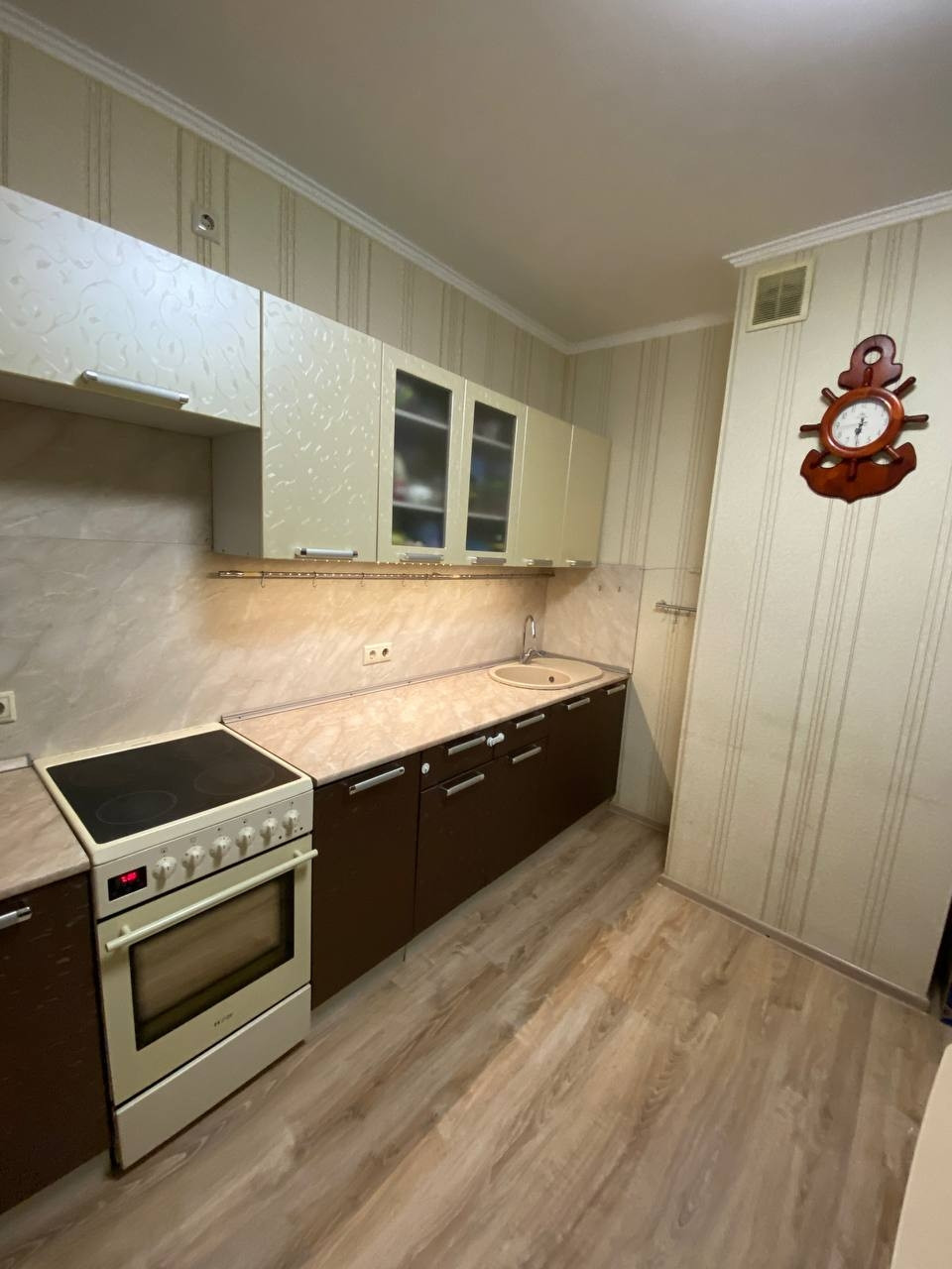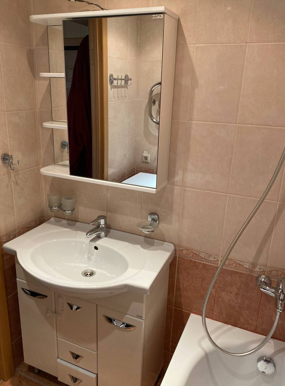 В квартире остаётся кухня, плита, два шкафа купе (1 в комнате, 1 в коридоре), кондиционер, все люстры.