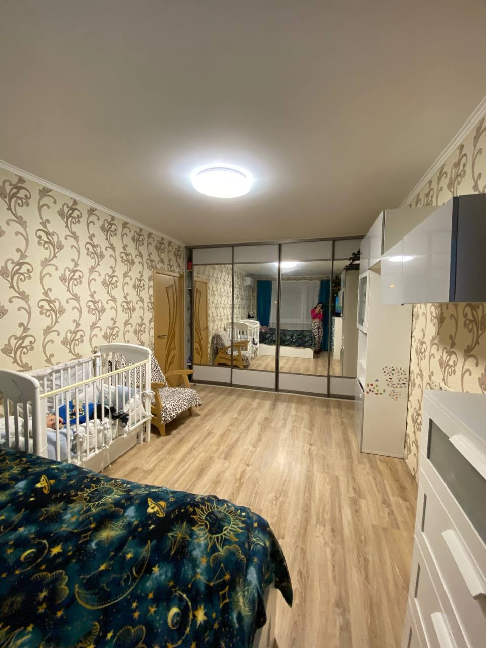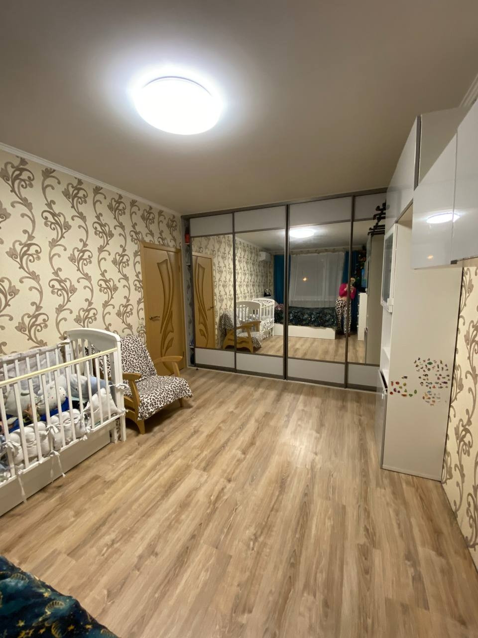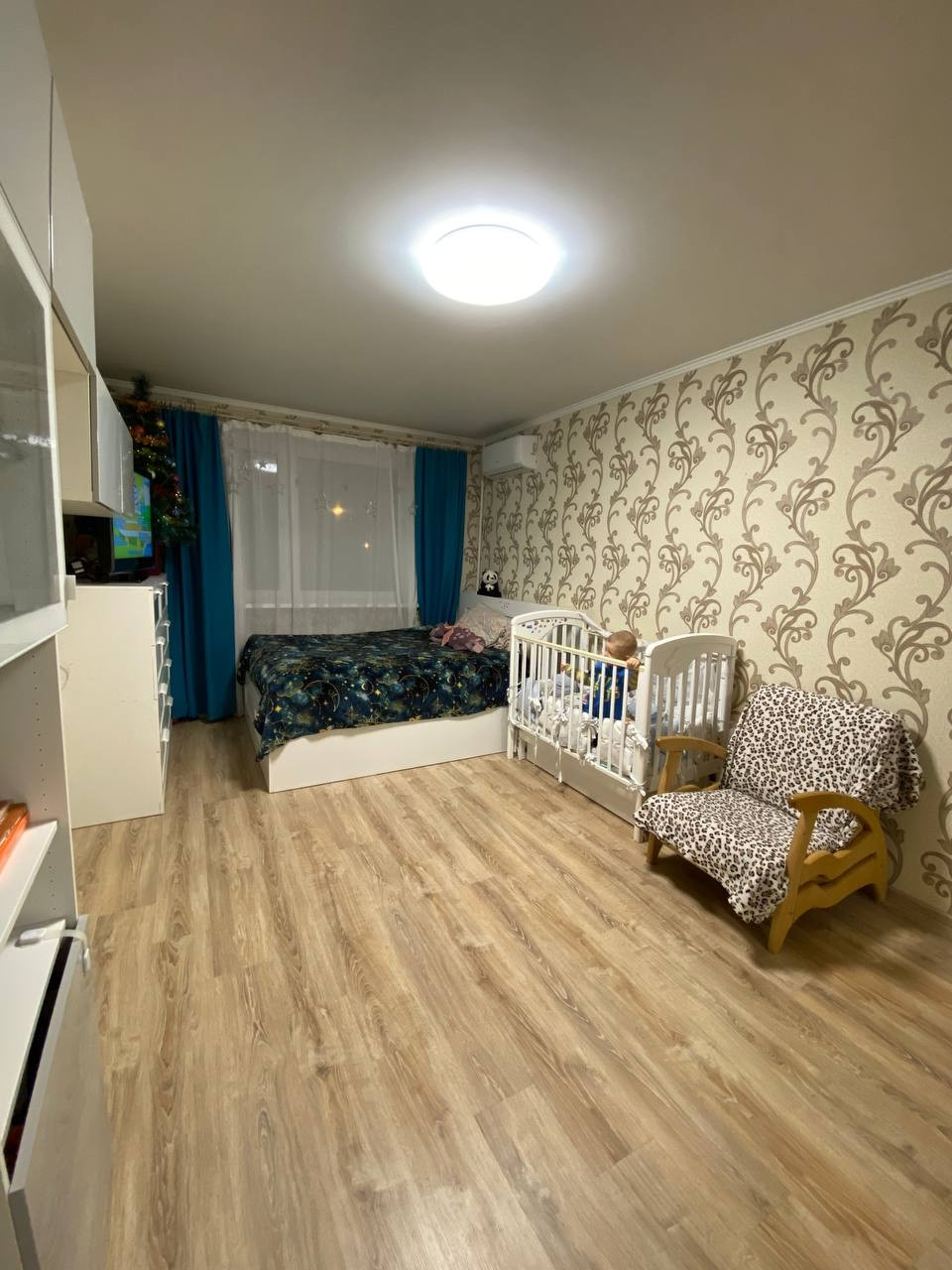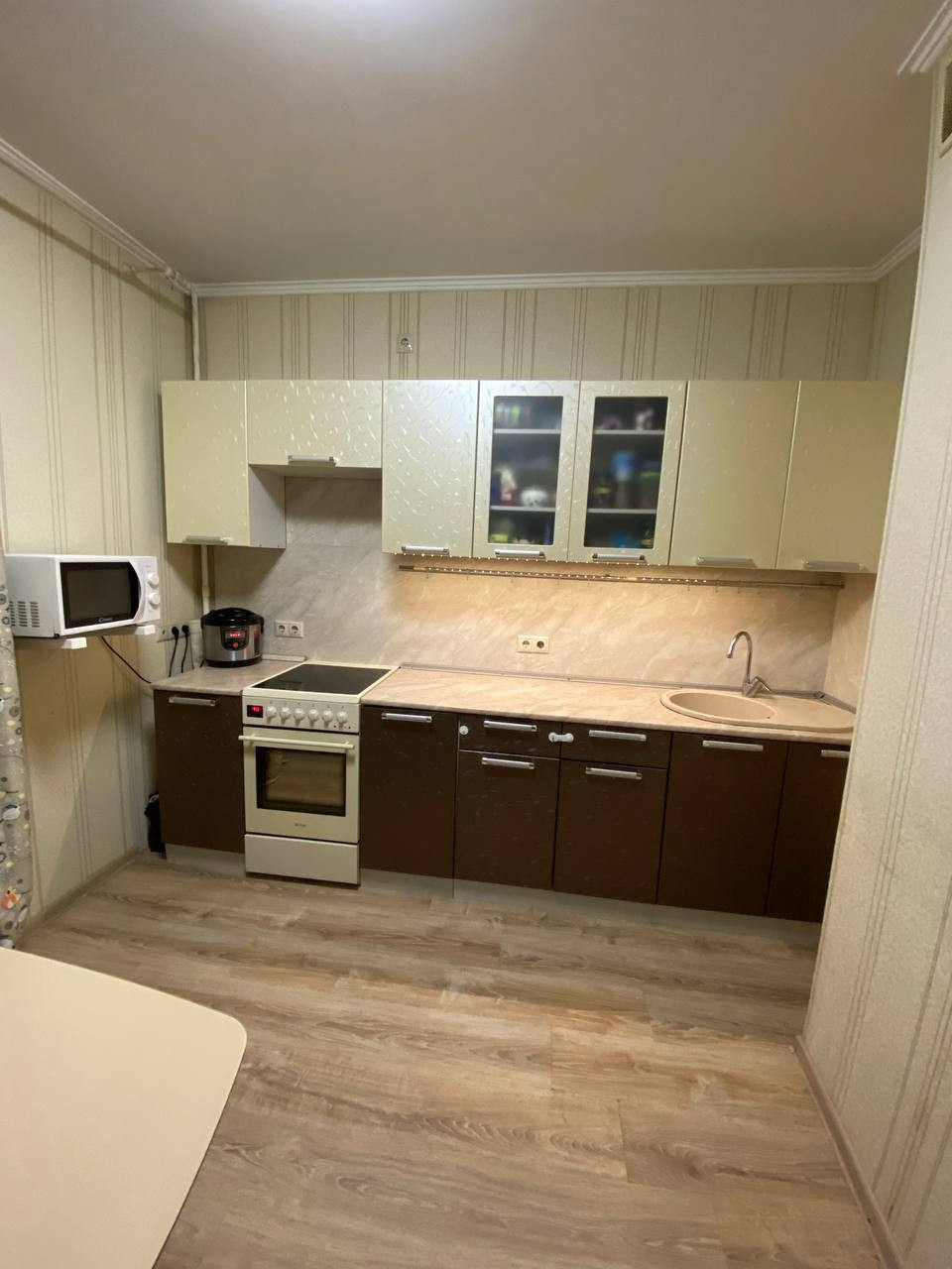 В квартире остаётся кухня, плита, два шкафа купе (1 в комнате, 1 в коридоре), кондиционер, все люстры.