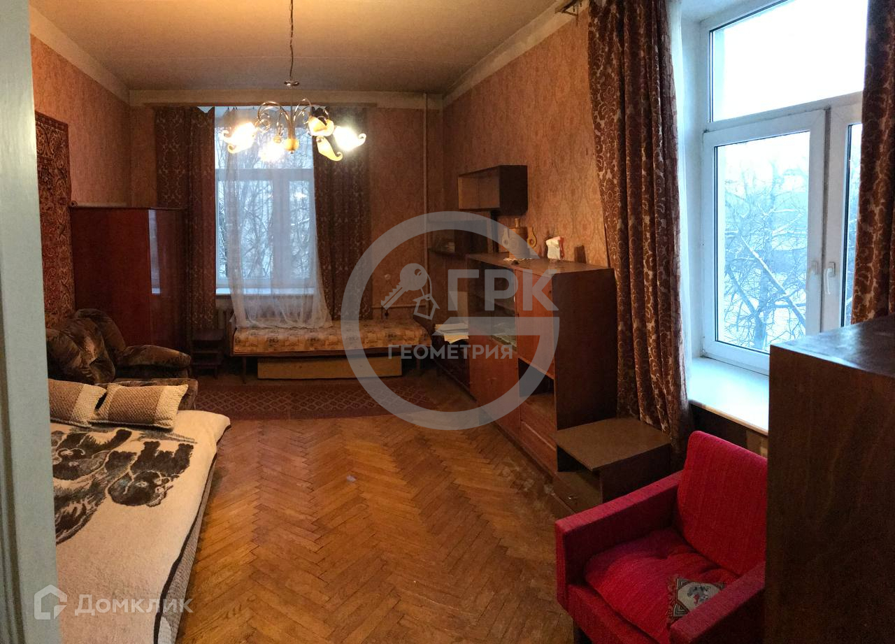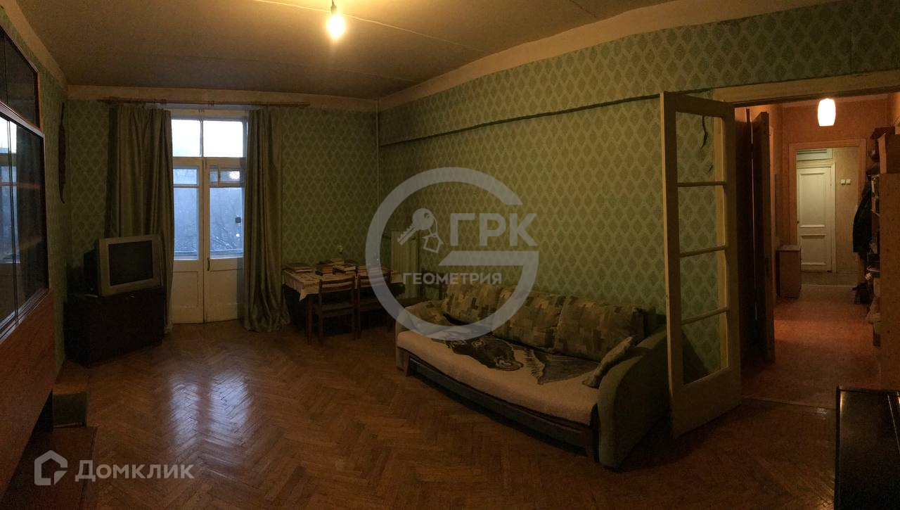 Квартира линейная с видом из окон на сквер и двор. Требует ремонта. Жилая площадь 62,8 м2. Комнаты смежно-изолированные: изолированная — 17,3 м2, проходная — 24,5 м2, запроходная — 21 м2. Два балкона. С/У раздельный. Кухня 8,7 м2. Подъезд чистый и ухоженный. Пассажирский лифт. Соседи тихие.