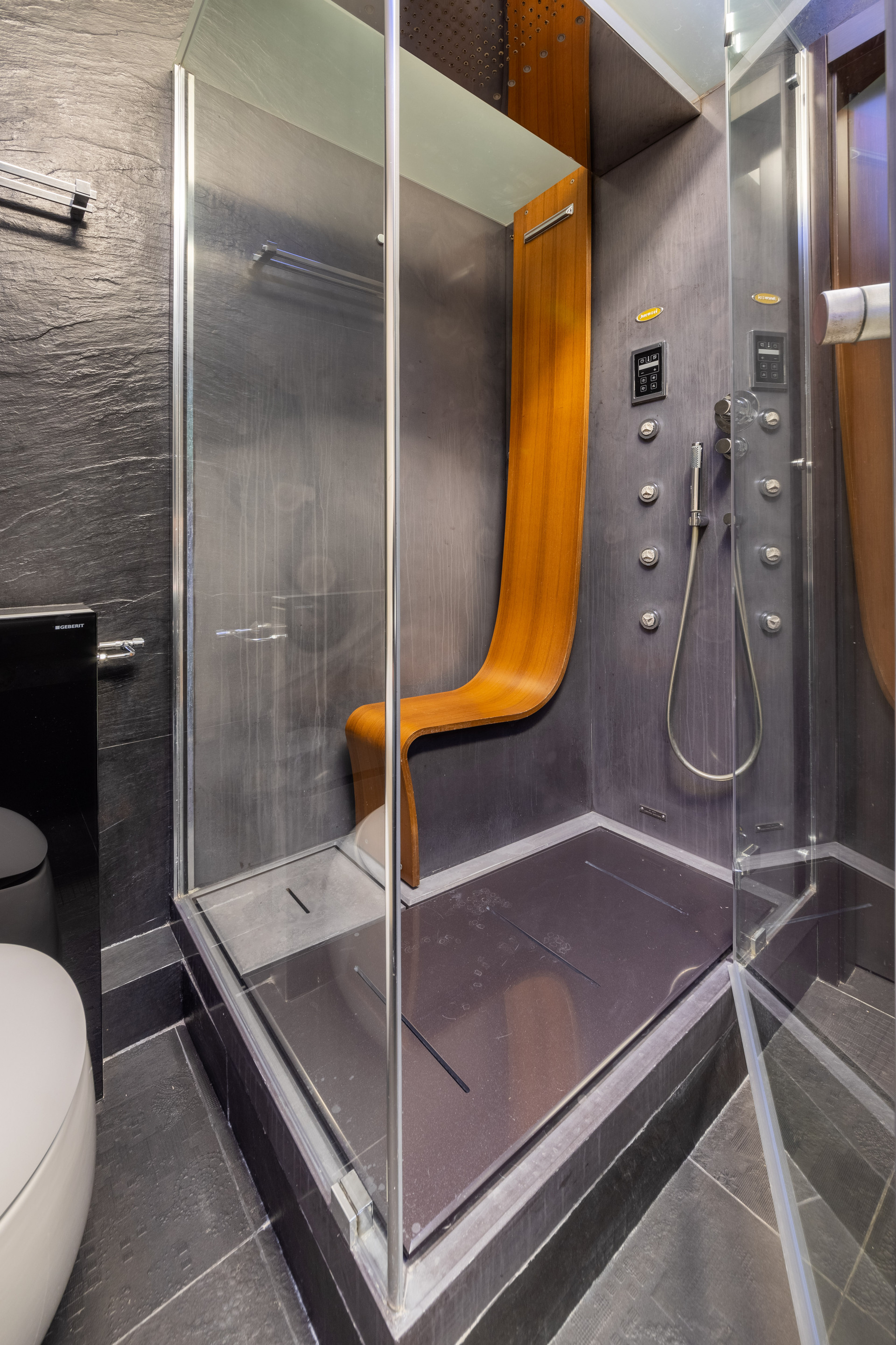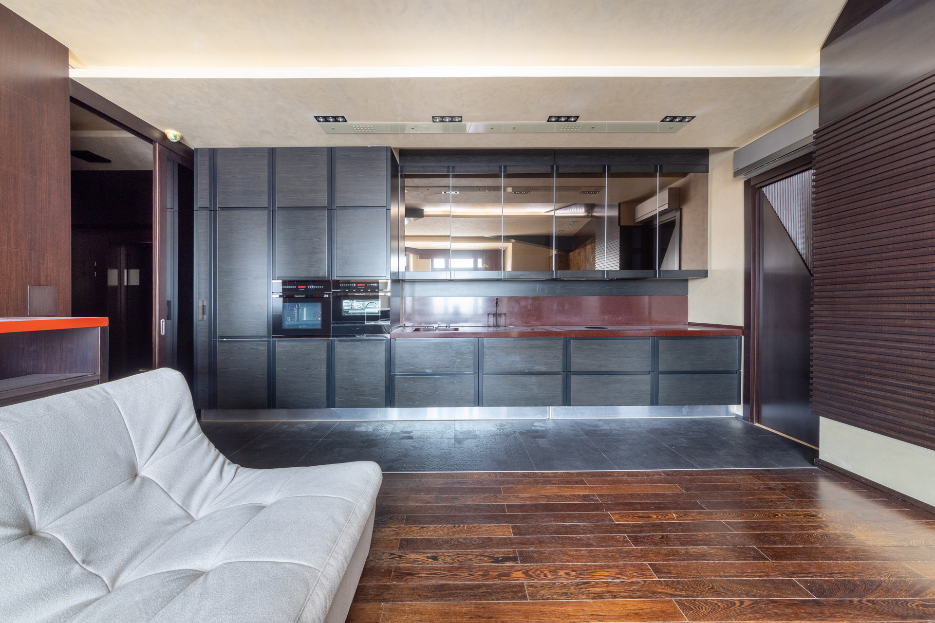 В отделке использованы натуральные премиальные материалы и техника: мрамор, дуб, дорогая техника Kuppersbusch, приточная вентиляция с фильтрами воздуха, система кондиционирования DAIKIN.