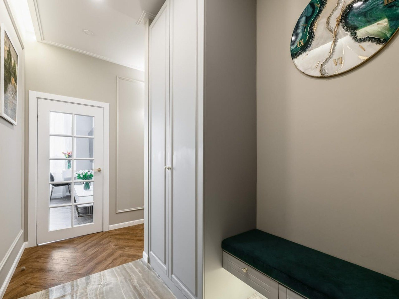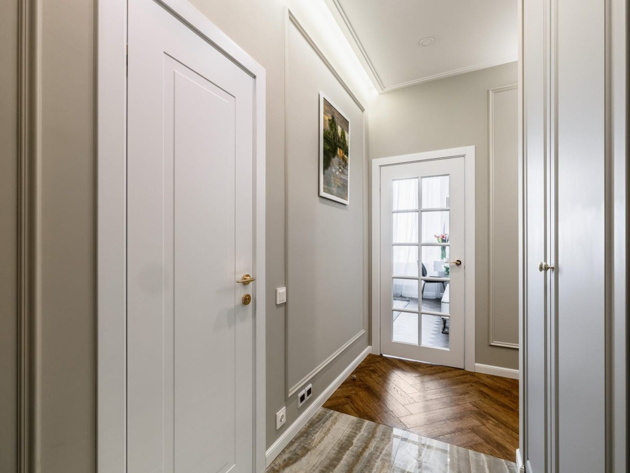 В квартире выполнен великолепный ремонт из импортных материалов класса премиум. Выдержана единая стилистика с деликатными акцентами.