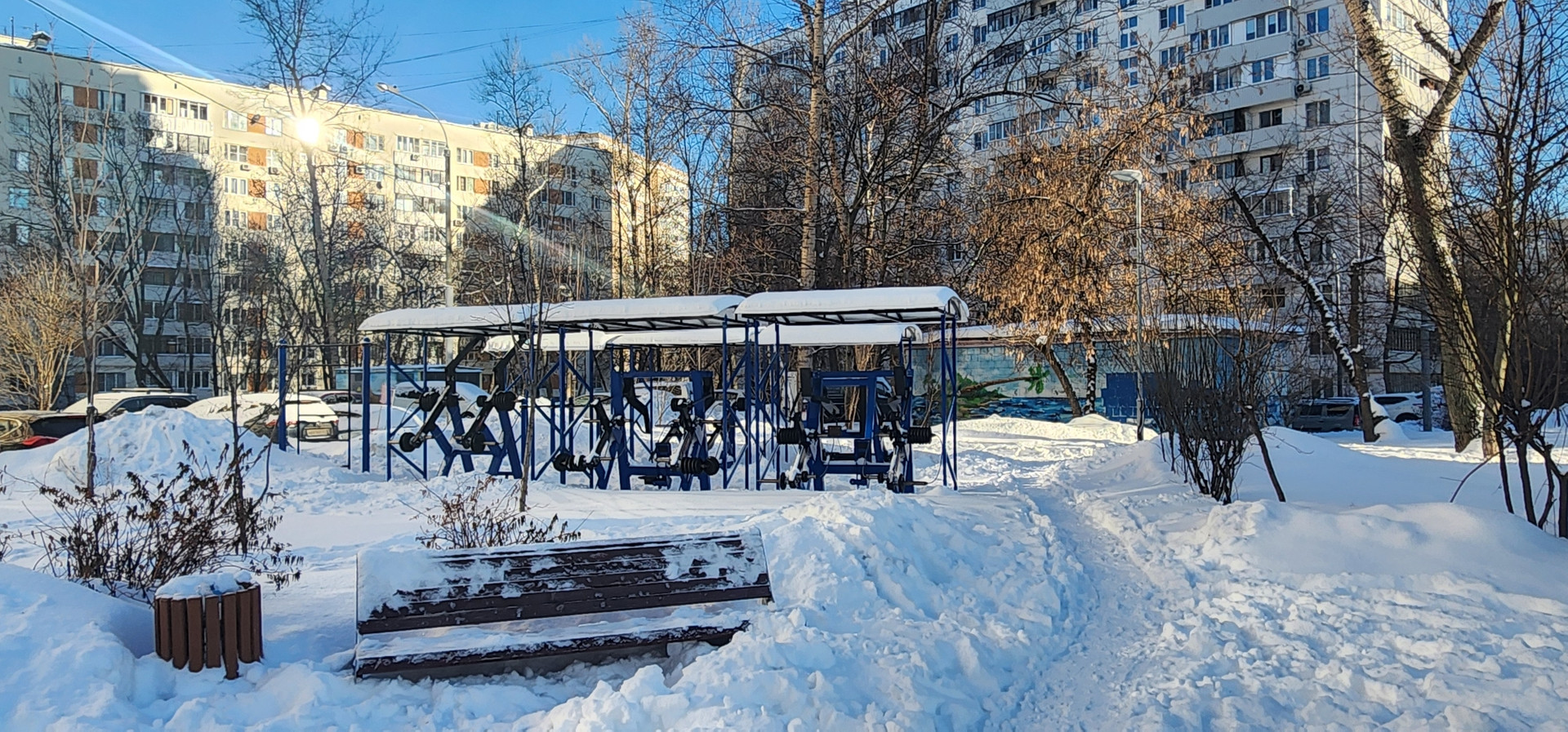 Придомовая территория благоустроена и облагорожена, есть детская площадка, спортивная зона, аллея со скамейками, подъезд к дому закрыт, установлен шлагбаум только для жителей данного дома. Придомовая территория находится под видеонаблюдением.
