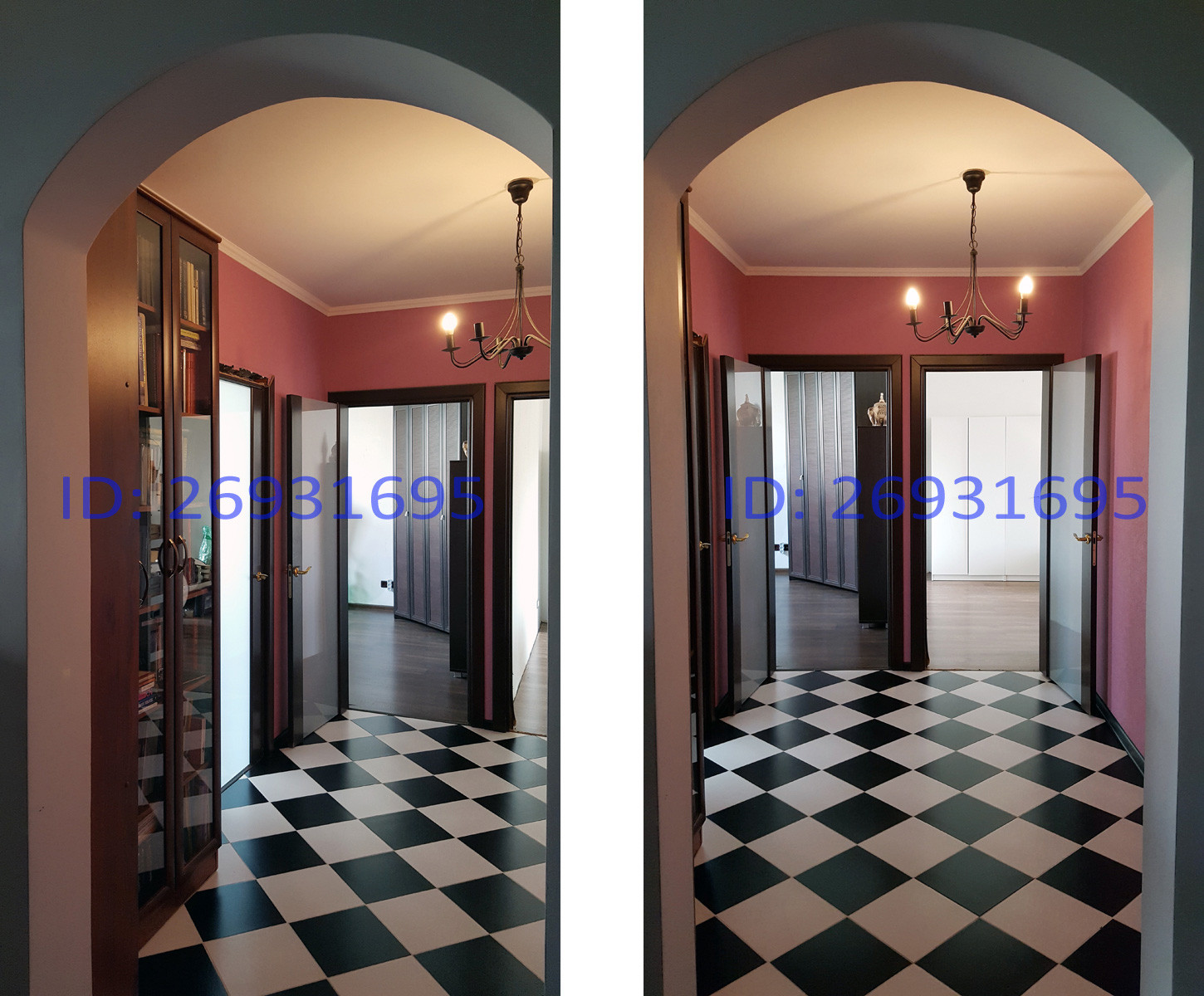 Большая часть мебели вывезена, вещи упакованы. Холл квартиры подготовлен под косметический ремонт.