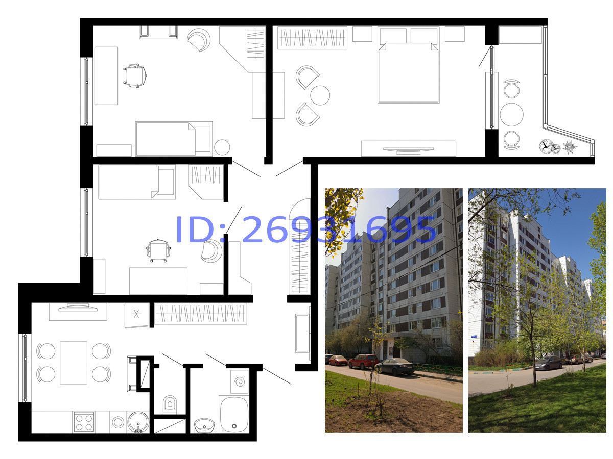 Квартира расположена на спокойной улице, на шестом этаже 10-ти этажного панельного дома. Окна кухни и двух спален, обращены на северо-восток, окна зала с лоджией на юг-запад. Квартира солнечная. Все комнаты изолированы, есть общий холл. Отдельно от жилой части квартиры коридор-прихожая.