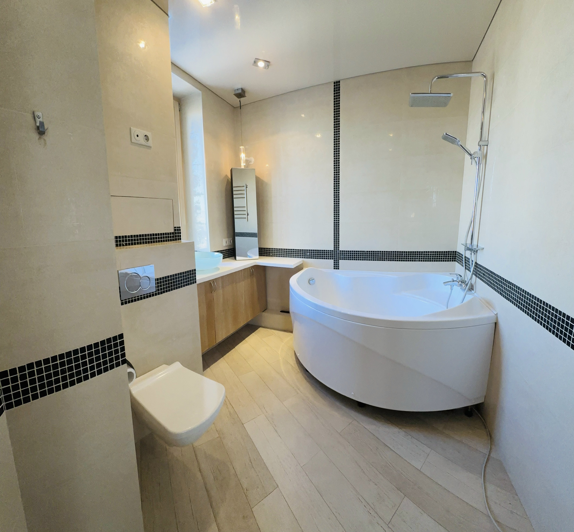 Выполнен качественный, современный ремонт. Недавно установлен новый кухонный гарнитур, ванная-джакузи, рольф-шторы в гостиной, стойка под раковину.
